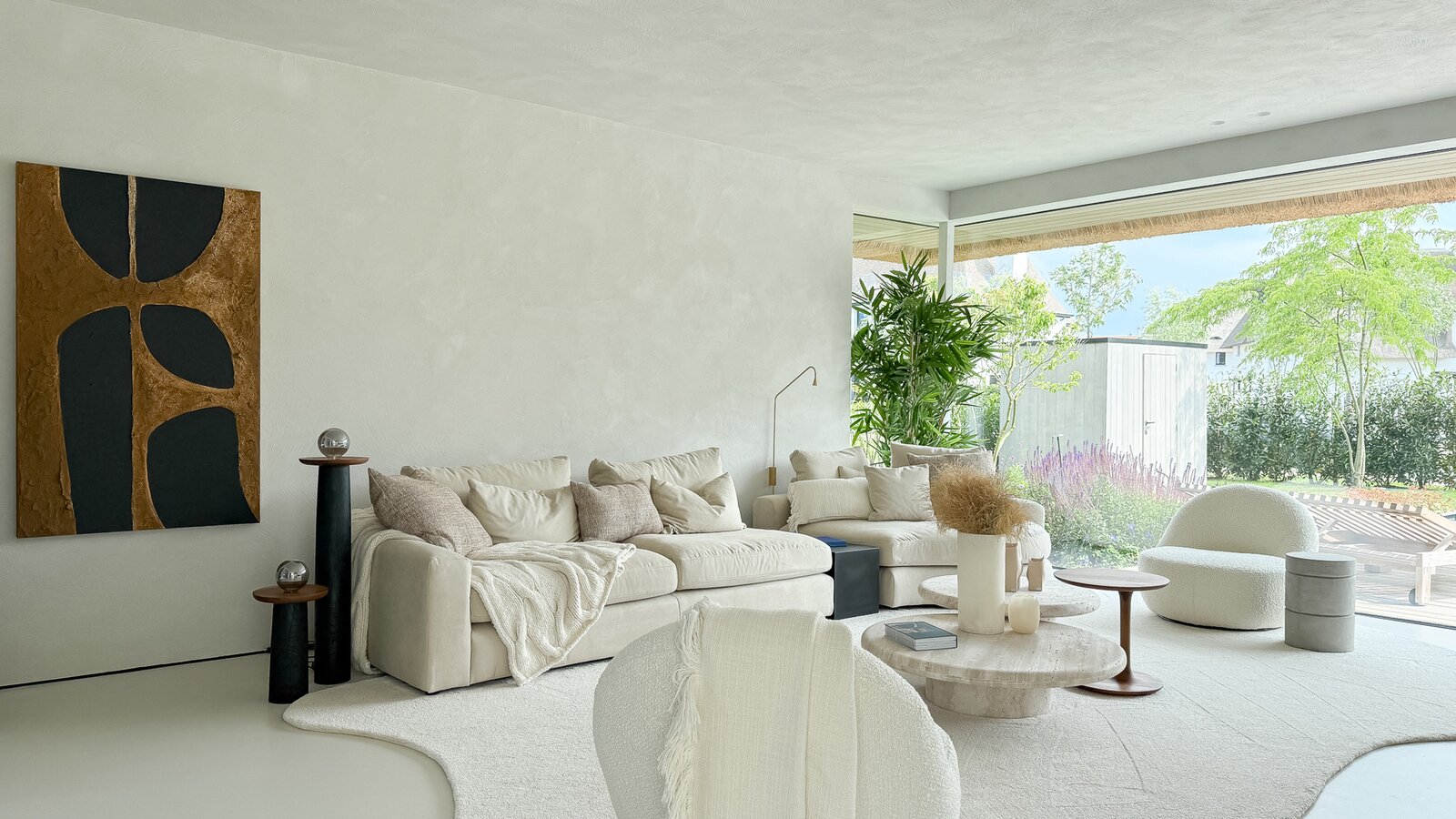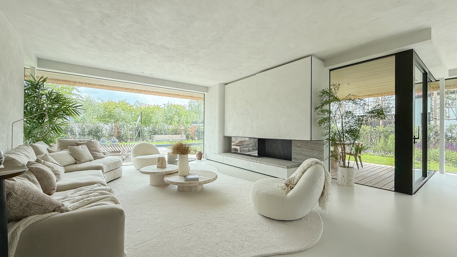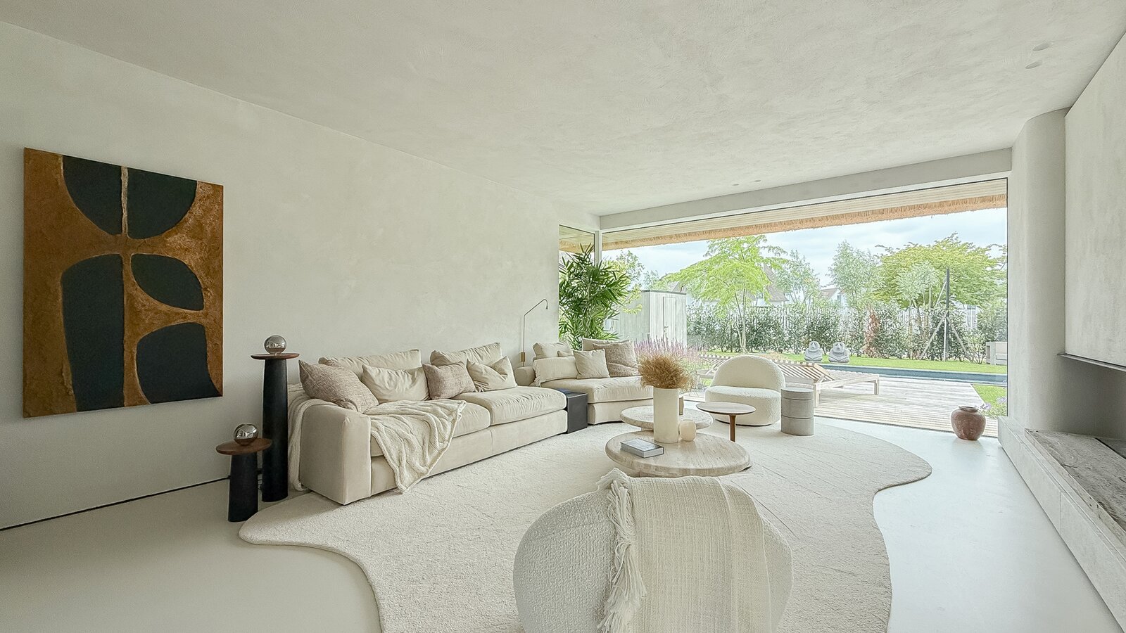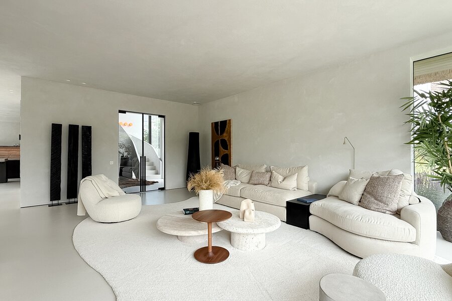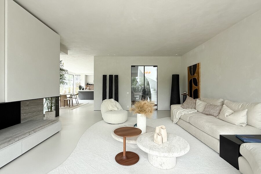Dès l’entrée, l’élégante et spacieuse hall d’accueil donne le ton : lignes épurées, matériaux raffinés et abondance de lumière naturelle grâce aux grandes baies vitrées minimalistes. Le séjour, généreux et lumineux, s’ouvre directement sur une terrasse couverte et un jardin soigneusement aménagé, avec piscine chauffée (8 m x 2,5 m), baignée de soleil tout au long de la journée.