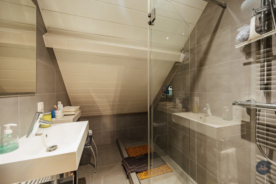 Bij het betreden van de woning ervaart u direct de praktische en doordachte indeling. De lichtrijke leefruimte, extra gezellig gemaakt door een sfeervolle pellet inbouwhaard, sluit naadloos aan op de prachtig gerenoveerde keuken die voorzien is van alle modern comfort. Een grote troef is de vergunde veranda, waar u het hele jaar door kunt genieten van een optimaal tuincontact. De woning beschikt verder over vier volwaardige slaapkamers en twee badkamers, wat het de ideale gezinswoning maakt. Daarnaast zijn er een praktische berging, een aparte wasplaats en een ruime zolder aanwezig. De kruipkelder werd bovendien voorzien van vloerisolatie, wat bijdraagt aan het energetisch comfort van de woning.