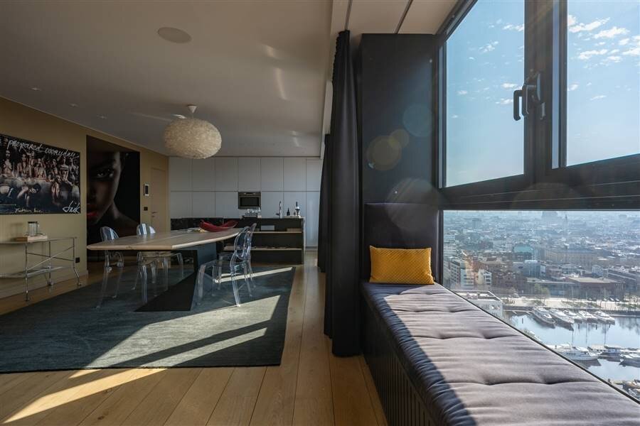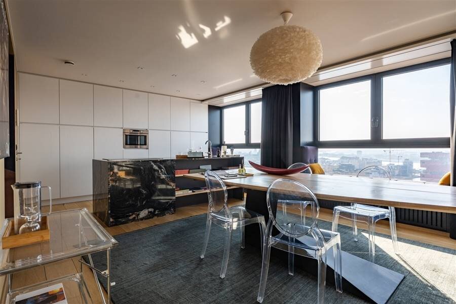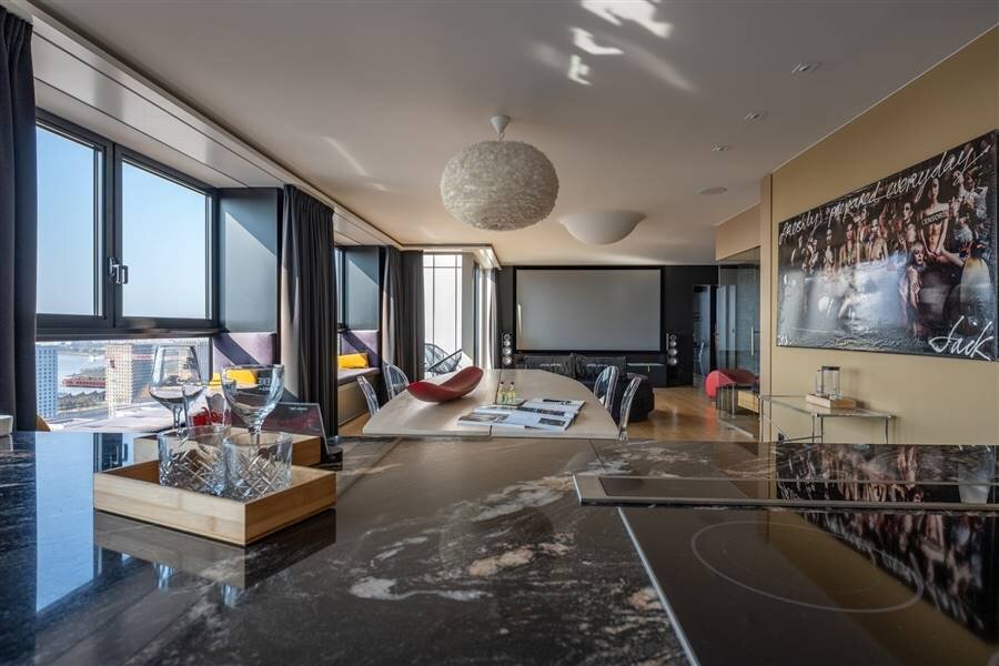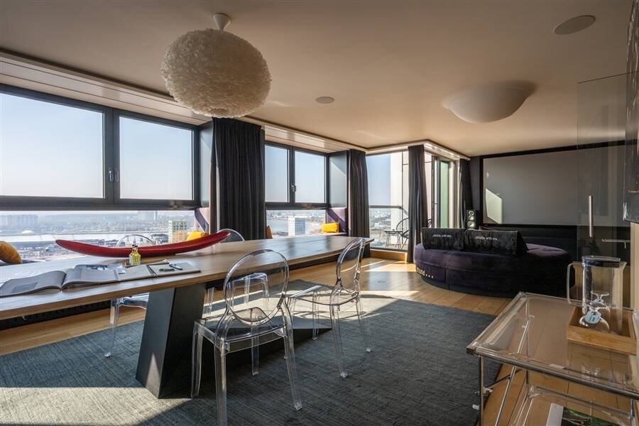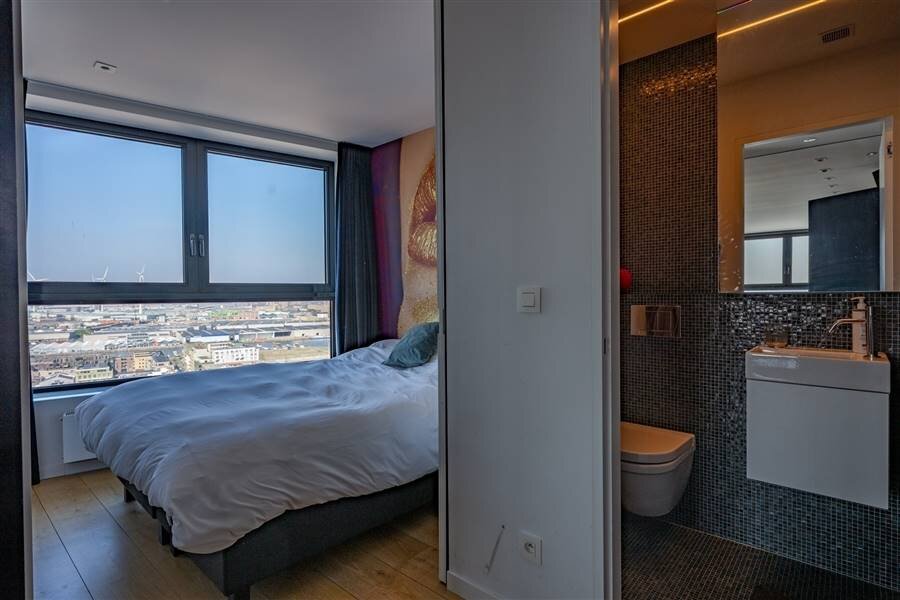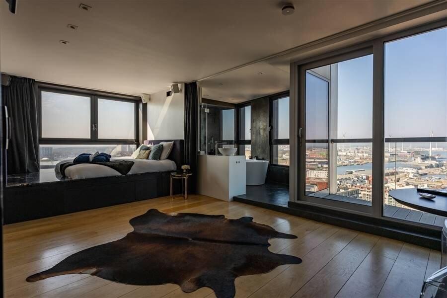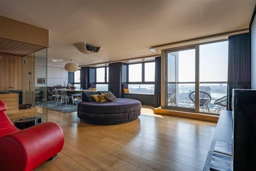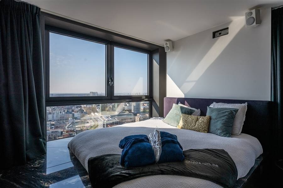 Au 21ème étage de l'emblématique London Tower sur l'Eilandje, avec une vue époustouflante à 270° sur Anvers, le MAS, le port de plaisance, l'Escaut et la cathédrale.