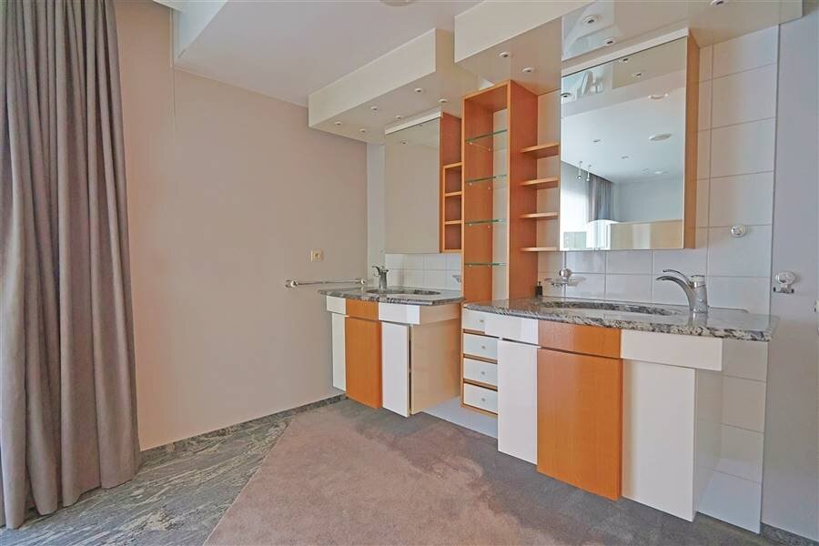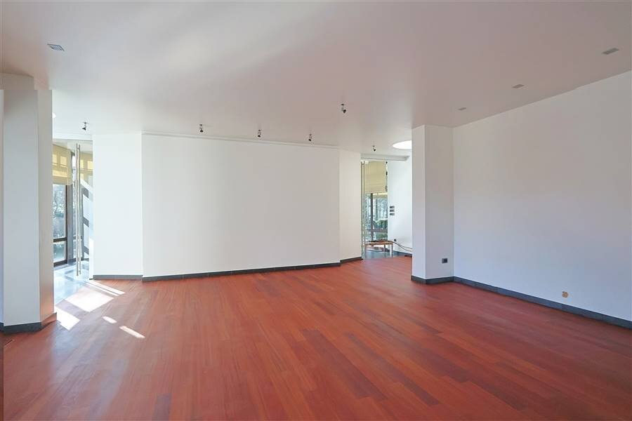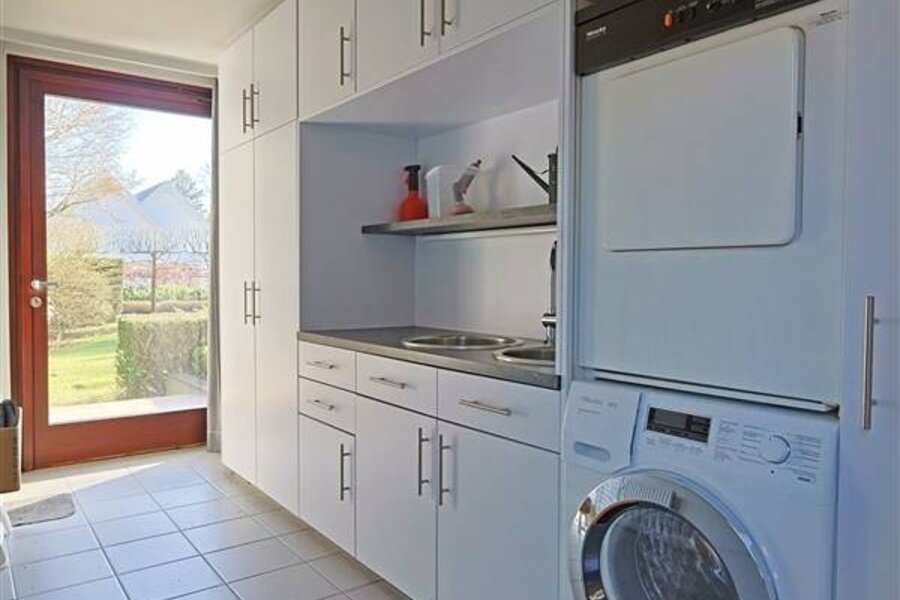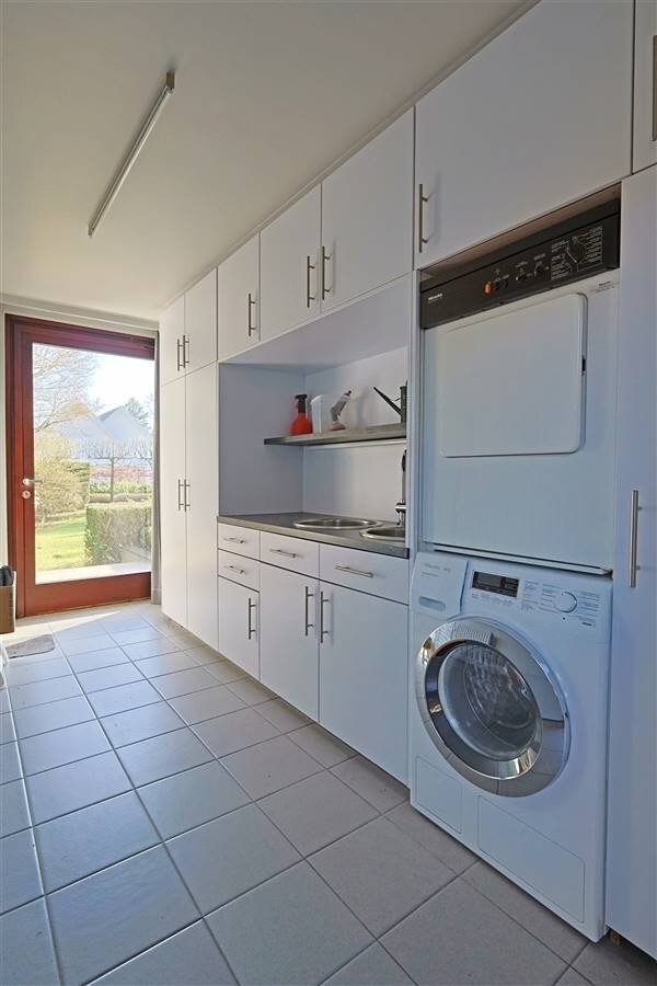 Verder bevindt zich op het gelijkvloers een bureauruimte, een master bedroom met aansluitende badkamer en dressing, een extra kamer die kan dienen als slaapkamer of hobbyruimte en praktische ruimtes zoals een was- en strijkruimte.