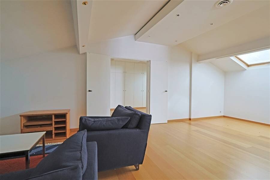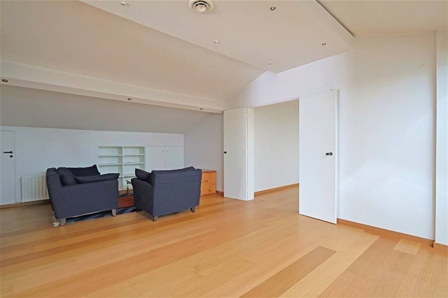 Op de eerste verdieping bevinden zich nog een polyvalente ruimte, drie slaapkamers, een douchekamer en meerdere zolder- en bergruimtes die extra mogelijkheden bieden. Daarnaast beschikt de woning over een kelder en een inpandige garage voor twee wagens met een aparte (technische) berging en een afvalberging.