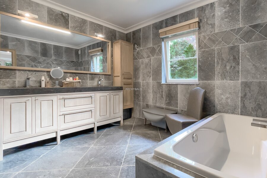 Villa d'environ 850 m² habitables, située au calme d'un clos verdoyant. Elle permet d'abriter une grande famille et une profession libérale. Informations détaillées sur www.archybald.be - ref. 4782959