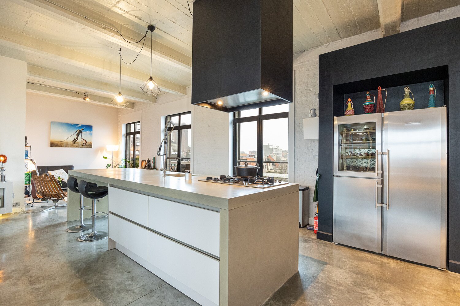 De woning, beschikt over mooie lichte en steeds zonnige volumes: 'een loft pur sang aangepast aan alle hedendaagse normen'.