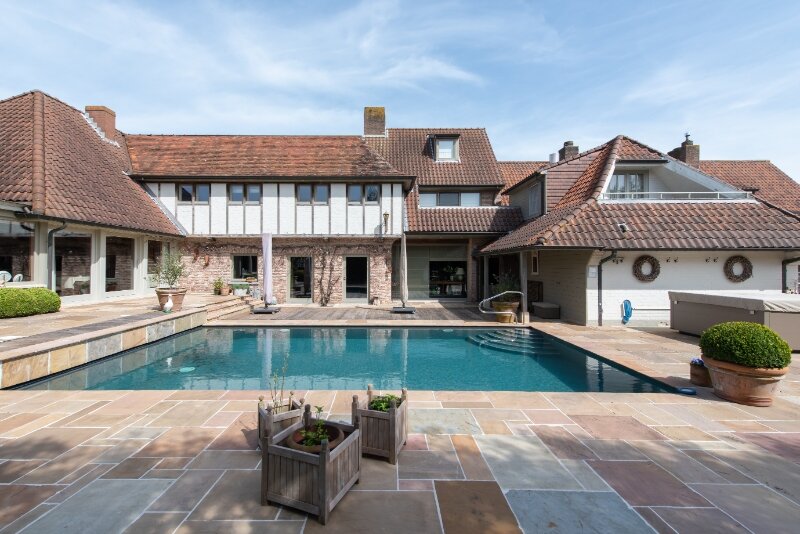Propriété exclusive villa avec B&B sur un terrain de 1989m² située au coeur du quartier Simli à Nieuwpoort-Bad. Cette grandiose villa d'une surface habitable de 860m² vous offre une interaction sans compromis entre finitions, confort et espace ! L'espace privatif comprend un grand hall d'entrée avec un majestueux escalier en chêne, WC séparé, spacieux séjour avec poêle à bois, cuisine ouverte entièrement aménagée, cave à vin avant la lettre par Cellier, véranda avec luminosité et ensoleillement exceptionnels, buanderie avec chauffage central, passage vers la zone commerciale & espace privé avec ascenseur, dernier étage avec 2 grandes chambres, dressing & une grande salle de bain avec bain à bulles, douche et double vasque. A l'extérieur, nous trouvons une très grande terrasse en pierre naturelle (96 m²) avec fontaine du château et un chalet en chêne recouvert de tuiles anciennes et aménagé comme une cabane tyrolienne. La partie commerciale comprend un B&B 4 étoiles de très grande qualité avec un bon chiffre d'affaires avéré ; À l'extérieur, il y a 7 places de parking différentes à usage privé et pour les invités. Les clients sont reçus dans le hall d'entrée avec coin salon et cheminée donnant sur la piscine, un apéritif peut être servi dans le chaleureux "Au Petit Café" de style contemporain, le couloir dispose d'un vestiaire et de toilettes et mène à la cuisine professionnelle où de nombreux grands chefs ont cuisiné et la salle de petit-déjeuner phénoménale et confortable (80 m²) avec buffet avec réfrigération, cheminée et projecteur. Le dernier étage est accessible via les escaliers de la tour ou l'ascenseur, on y retrouve quatre suites de luxe, toutes décorées de façon intemporelle avec des matériaux rustiques et du parquet en chêne et équipées chacune de leurs propres sanitaires et d'un espace bureau au bout du couloir. Il y a un garage double spacieux avec porte sectionnelle et local technique pour réfrigérateurs et congélateurs ; chauffage et chaudières. A l'extérieur vous pourrez profiter d'une terrasse en pierre naturelle exposée sud-ouest et ensoleillée au bord de la piscine en mosaïque (chauffée par pompe à chaleur avec échangeur de chaleur, équipée de volet roulant automatique en polycarbonate). A l'arrière nous trouvons une véranda de 3x4m, 2 puits de pluie de 5000 litres complétés par de l'eau de forage ; grand local à bois et local à vélos. Finition de haute qualité par la Croix Bourguignonne ; toutes les chambres ont des portes anciennes en chêne, des toilettes séparées et un placard vestiaire. EPC : 227 kWh/m². Prix demandé : sur demande.
