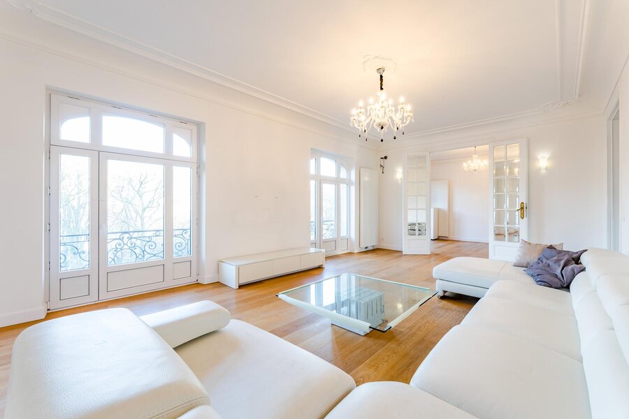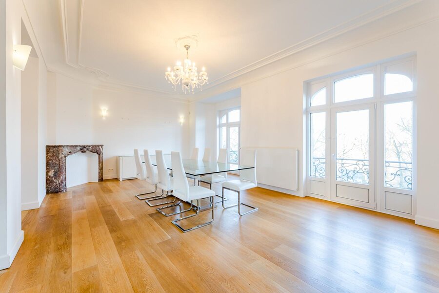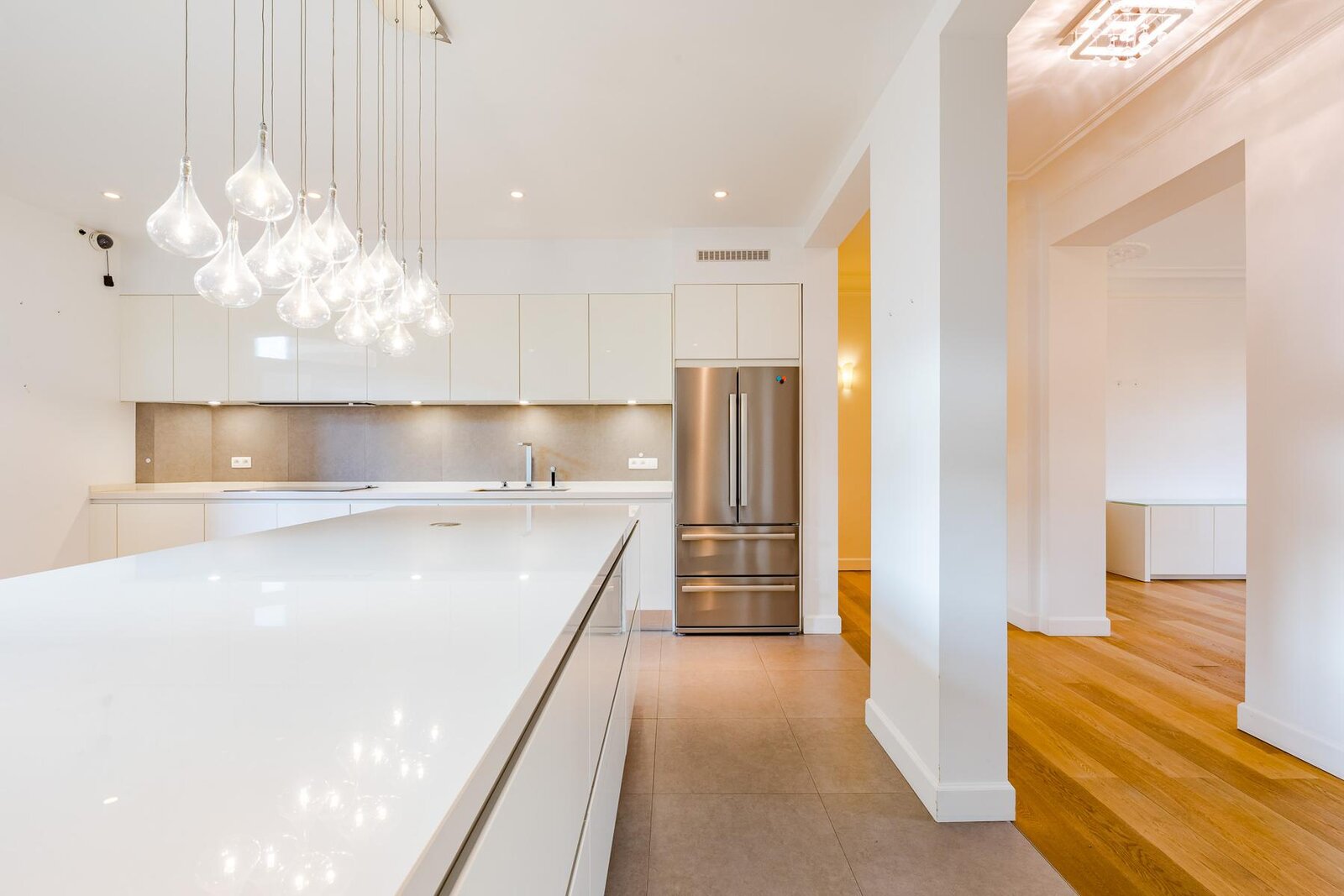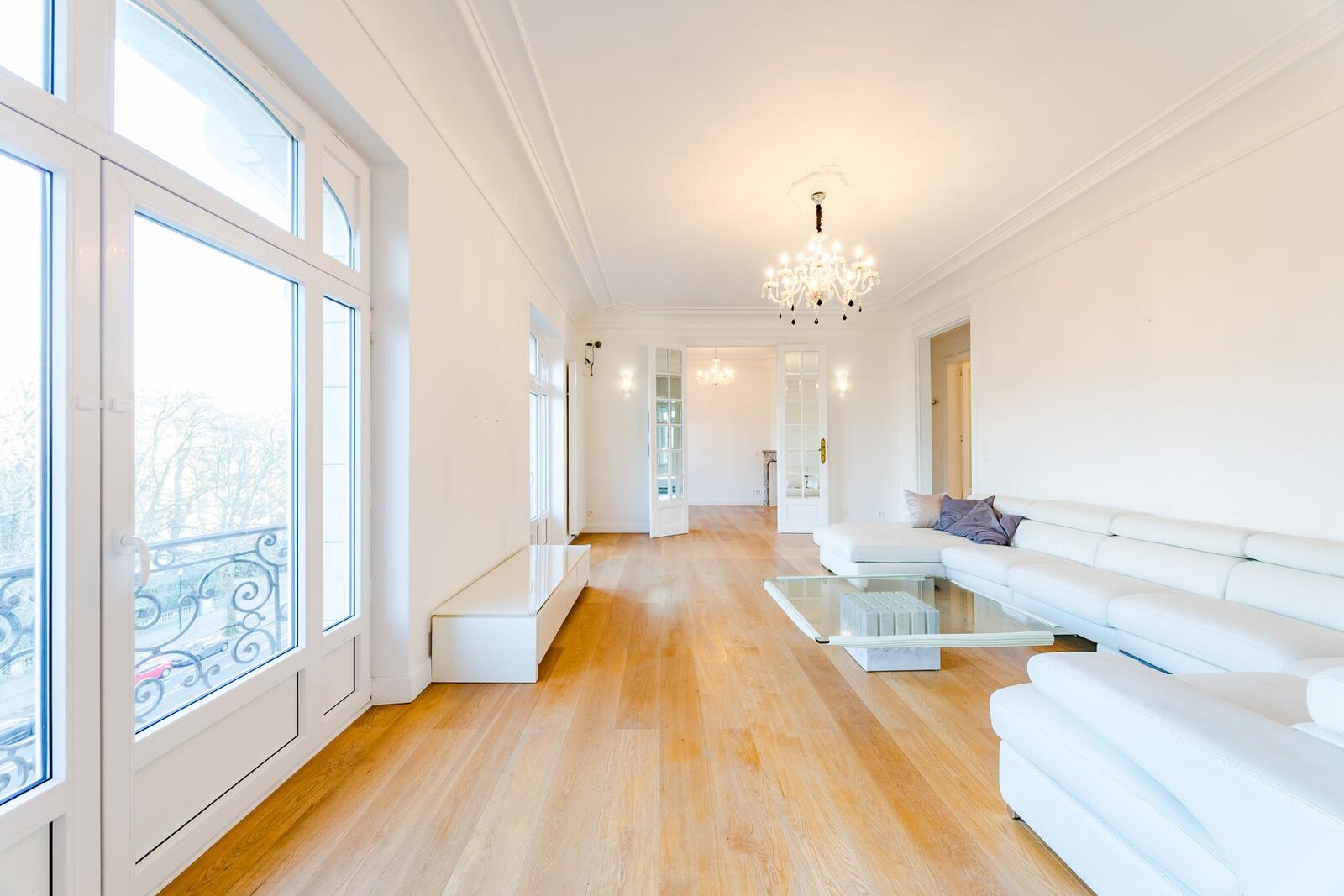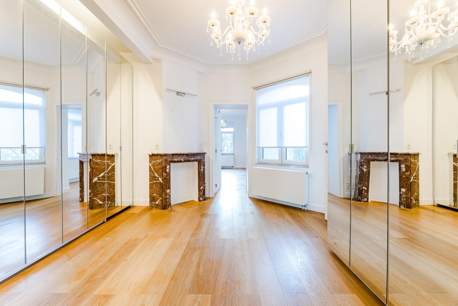 Très bien situé face à l'Abbaye de la Cambre et offrant une superbe vue sur celle-ci, appartement de réception de plus de 274 m2 habitables traversant. Sis au 4ème étage d'un immeuble élégant, il offre une grande cuisine dînatoire hyper équipée, une grande salle à manger, un beau salon et 2 grandes chambres en suite, un bureau ou 3ème chambre et un dressing sur-mesures. Un garage box pour (en option) ce beau bien et une petite terrasse arrière orientée sud donne sur la cuisine. Possibilité d'acquérir des garages supplémentaires dans l'immeuble. Belle chambre de bonne rénovée avec possibilité d'y installer une petite salle de douche. Bien rare rénové tant techniquement (chaudière gaz individuelle, double vitrage, électricité aux normes, alarme) qu’esthétiquement (parquets contemporains, belle hauteur sous plafond, cuisine contemporaine et très belles salles de bains)