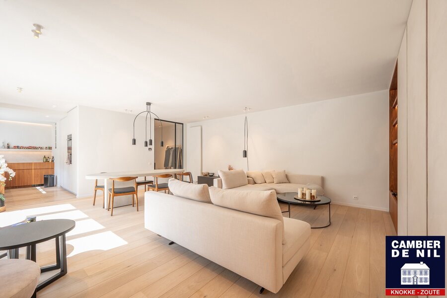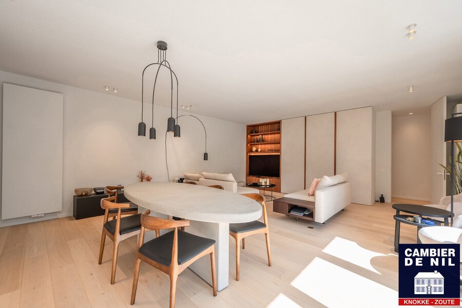 Luxueux et spacieux appartement de coin dans une villa-résidence de standing, jouissant de vues dégagées sur les villas du Zoute, du Binnehof, orienté plein Sud.