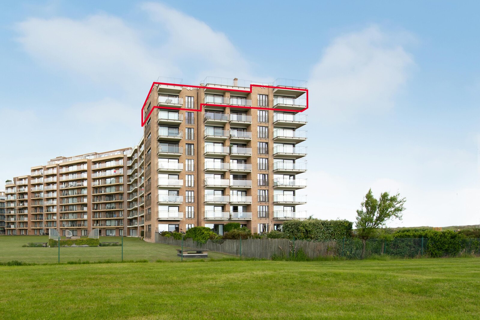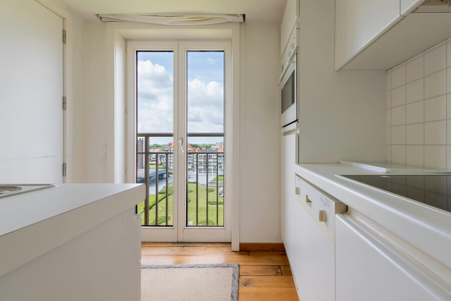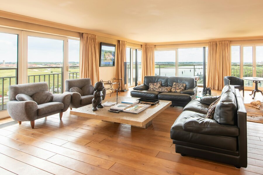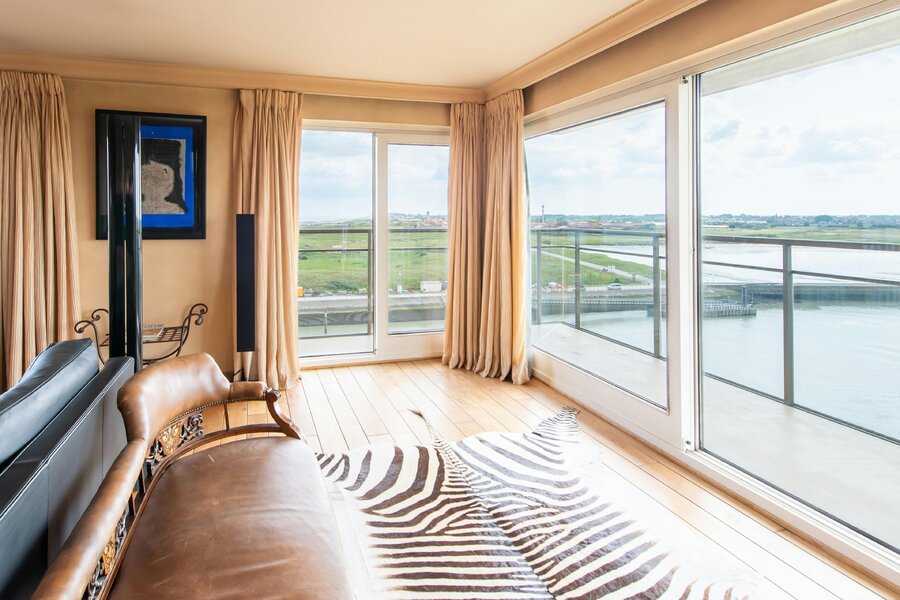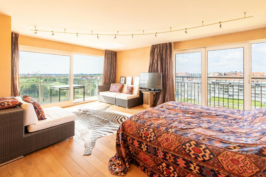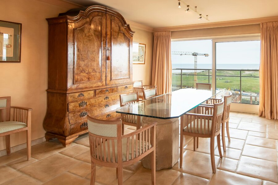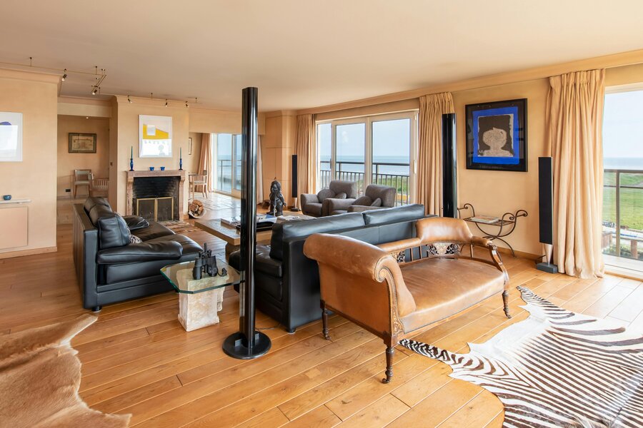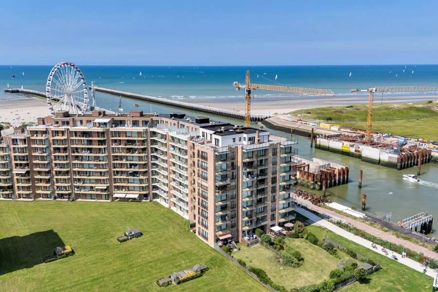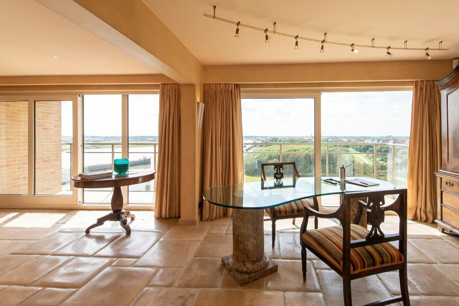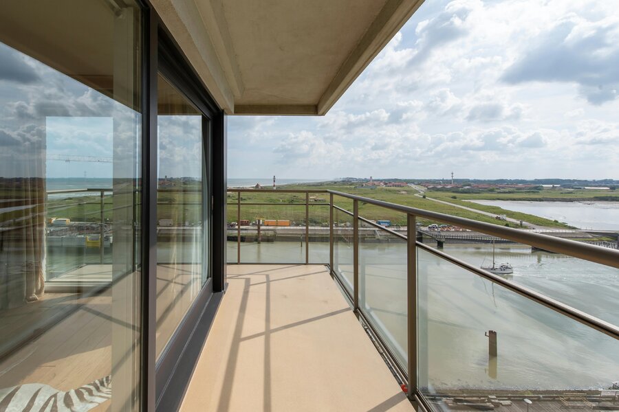 Appartement spacieux à vendre à Nieuport, Paul Orbanpromenade 4. Avec ses cinq terrasses, vous pourrez profiter d'une magnifique vue dégagée sur la mer ainsi que sur le parc maritime. Grâce aux grandes fenêtres, vous pouvez profiter de la lumière naturelle tout au long de la journée. Grâce à sa superficie généreuse, cet appartement offre d'innombrables possibilités d'aménagement.