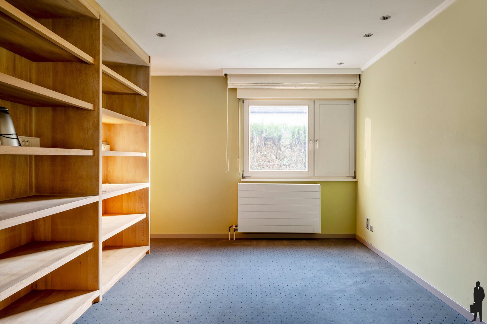 - Een kamer op vast tapijt en ingemaakte kasten