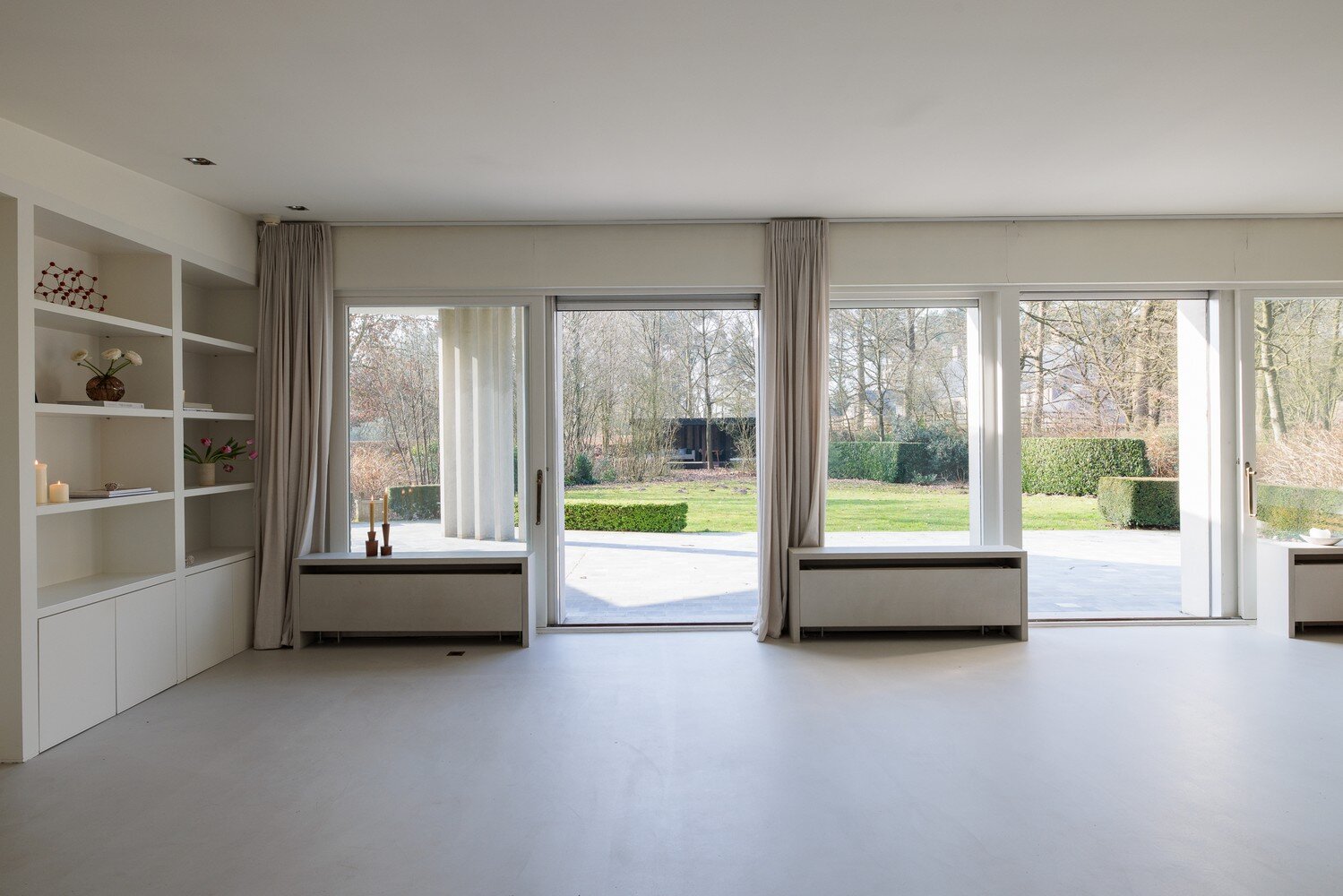 Bij binnenkomst wordt u verwelkomd in een inkomhal met vestiaire en gastentoilet. De lichtrijke woonkamer baadt in het daglicht dankzij de grote raampartijen die een prachtig zicht bieden op de tuin en directe toegang verlenen tot het zonnige terras. De open keuken, is discreet geïntegreerd in de ruimte.Het slaapgedeelte bevindt zich aan de andere zijde van de woning en omvat 4 slaapkamers, een apart toilet en een badkamer met ligbad, inloopdouche en dubbele lavabo. Verder beschikt de woning over een ruime kelderverdieping met een wasruimte, extra bergruimte en een polyvalente ruimte die naar wens kan worden ingevuld.