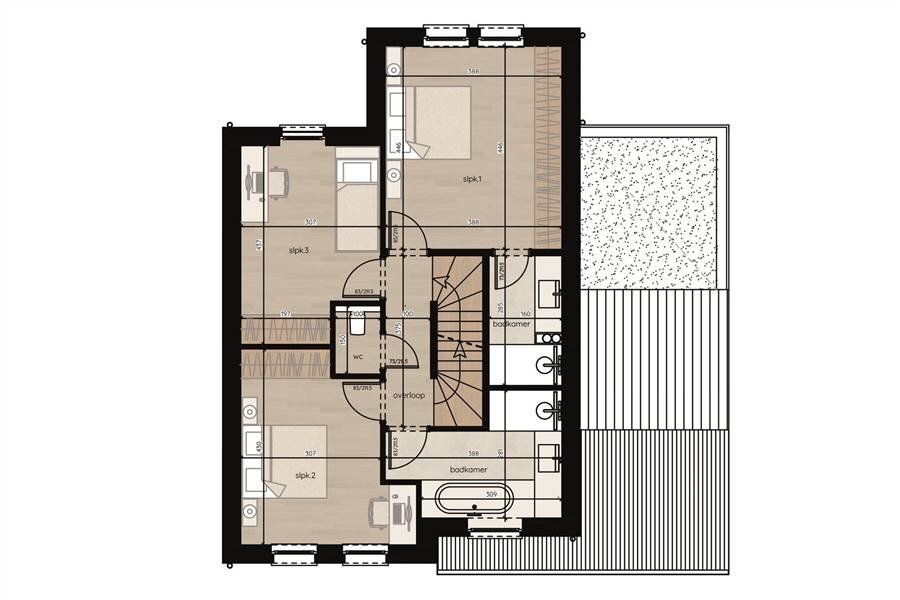 De volledige indeling kan u via bijgevoegde plannen raadplegen en indien mogelijk kan u deze in onderling overleg naar wensen personaliseren.