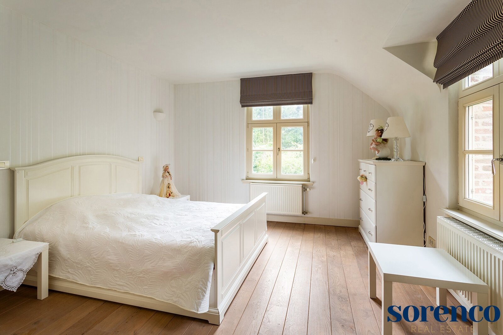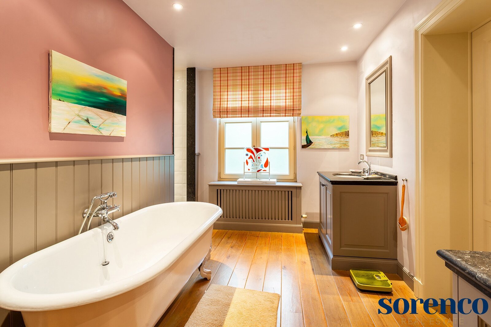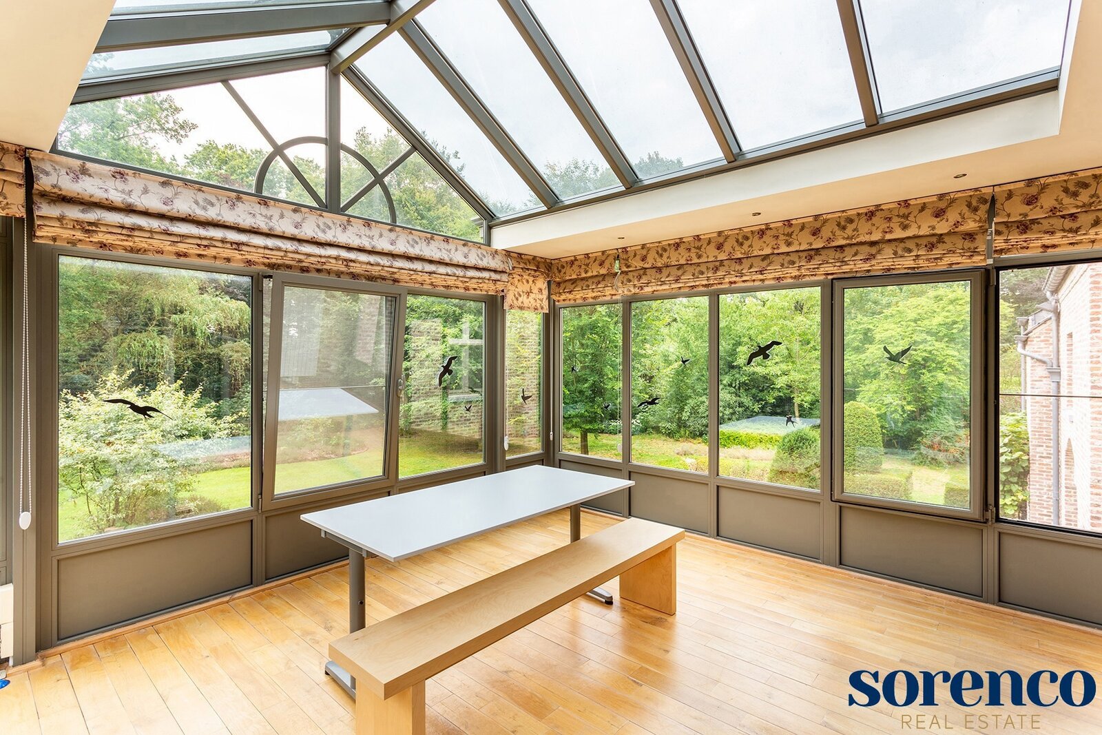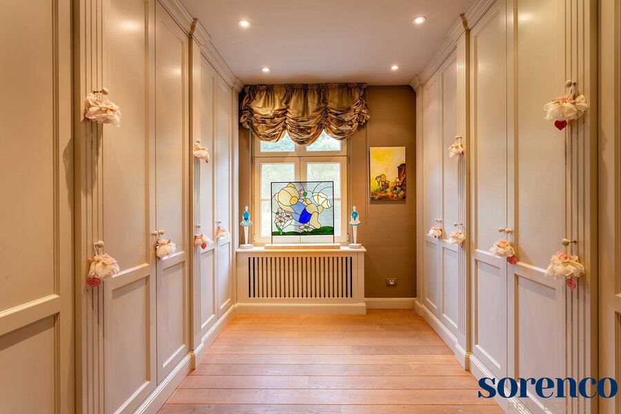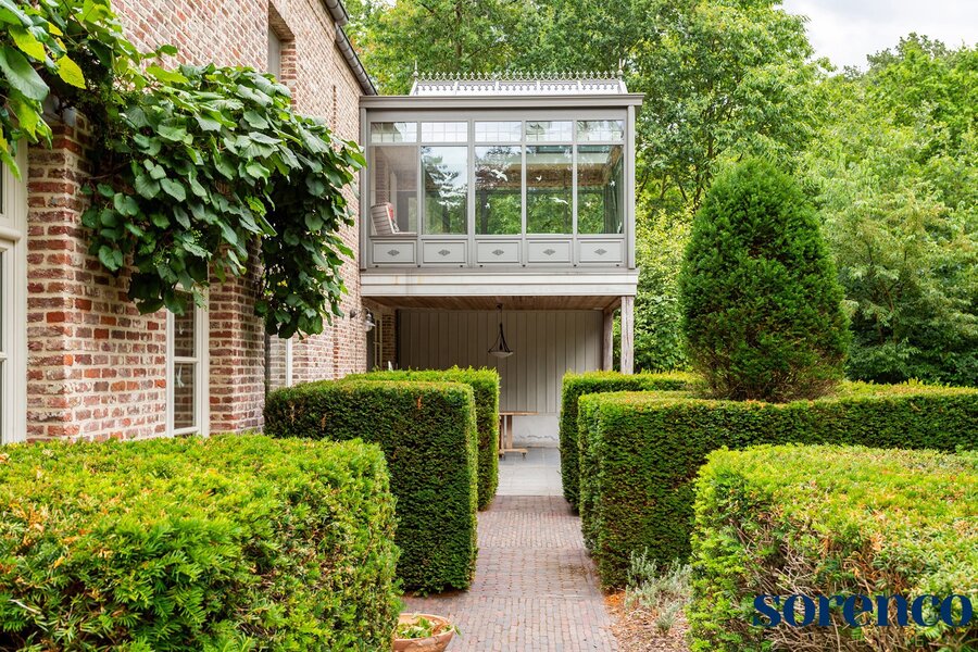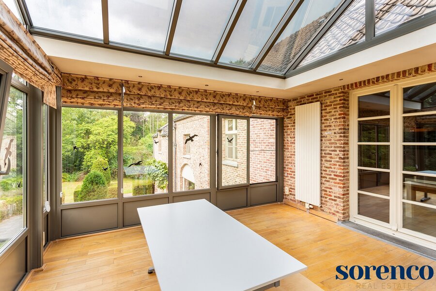 Verder is er een één-slaapkamer appartement ca. 26m² op parket met eigen keuken en een DRESSING ca. 10m², ORANGERIE ca. 20m² met tuinzicht, en BADKAMER ca. 18m² met vrijstaand ligbad, aparte douche en dubbele lavabo afgewerkt met blauwe arduin. Dit appartement kan omgevormd worden tot een MASTERBEDROOM (ca. 26m²) met badkamer en dressing. Een stalen trap aan de buitenzijde verbindt de ORANGERIE waardoor het appartement een eigen ingang heeft.