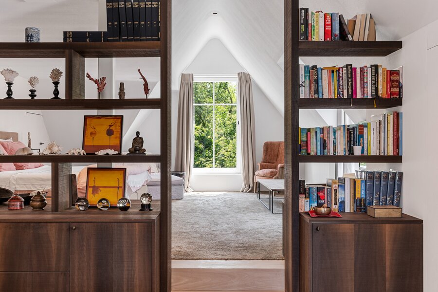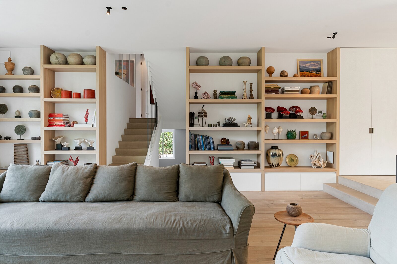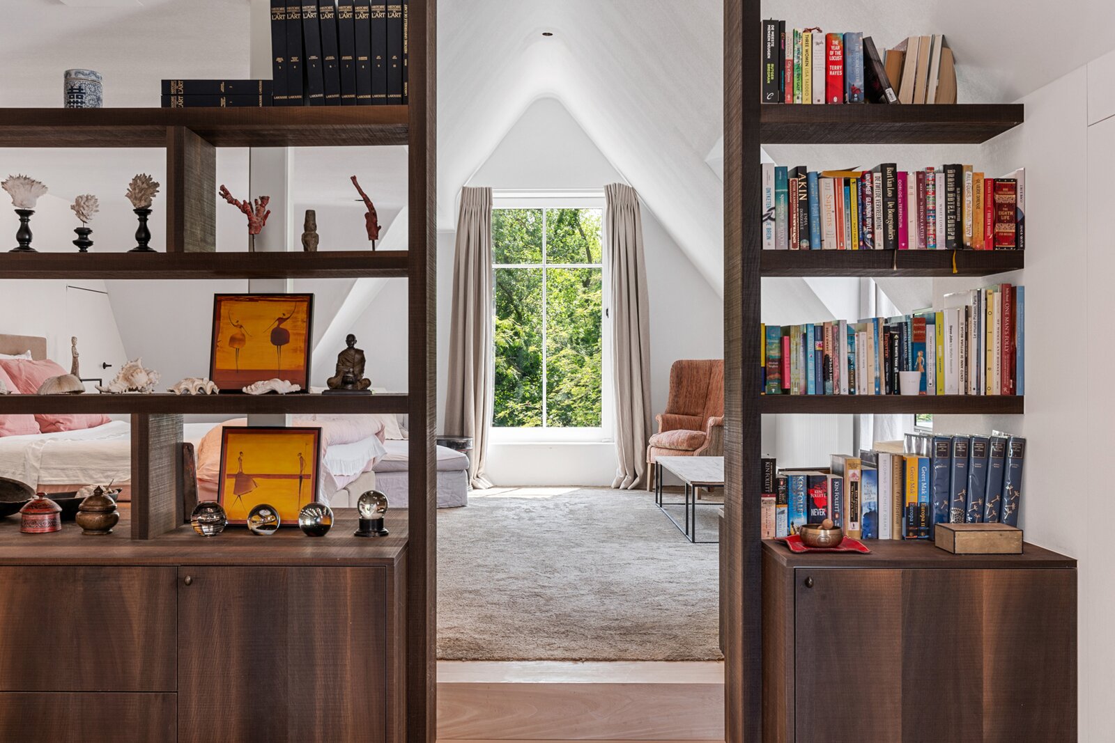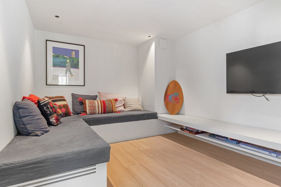 À l'entresol, nous trouvons un bureau avec vue sur la verdure et un coin TV/salle de détente séparé.