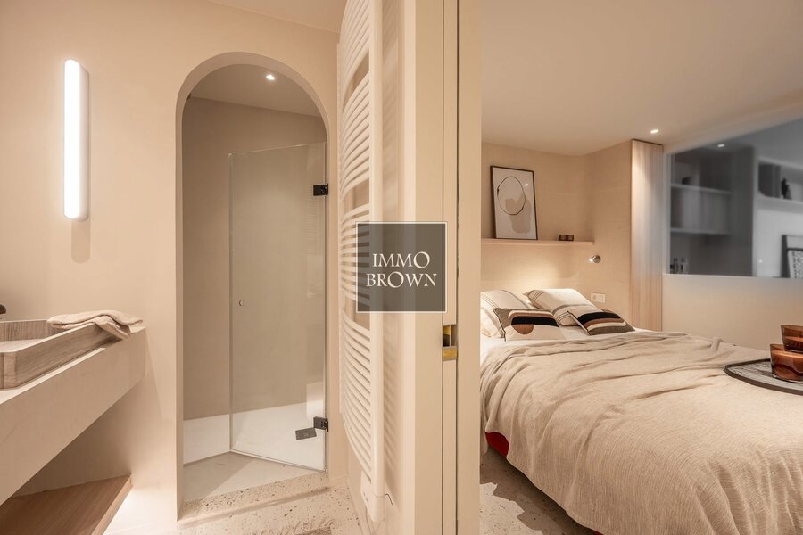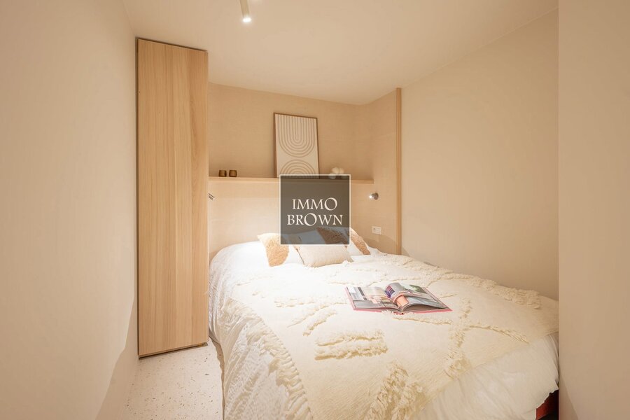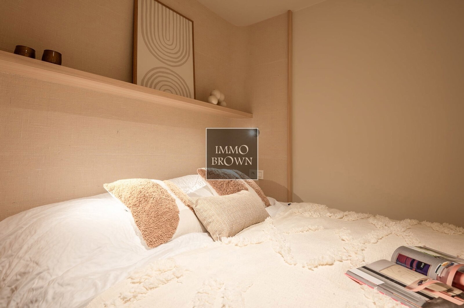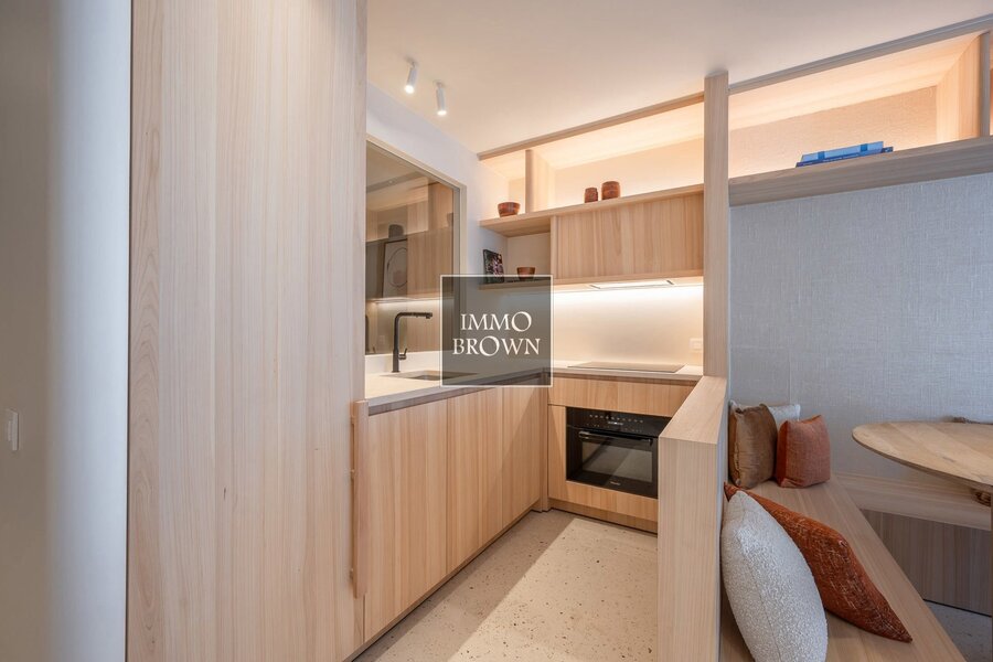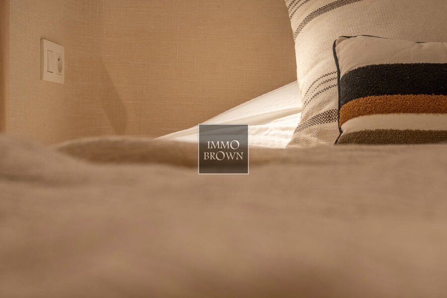 Disposition : Belle pièce à vivre lumineuse, avec vue sur la mer et coin repas. Cuisine entièrement équipée avec des matériaux de haute qualité. Chambre avec vue sur la mer, salle de bain attenante. Deuxième chambre. Les deux chambres sont équipées de placards.