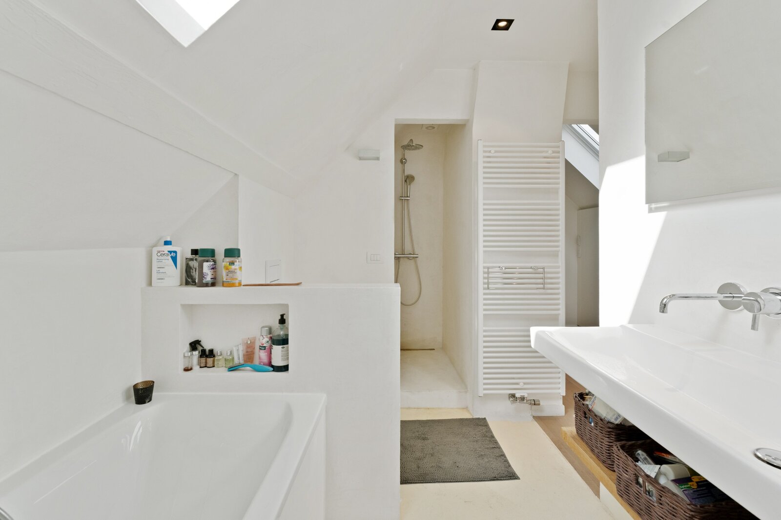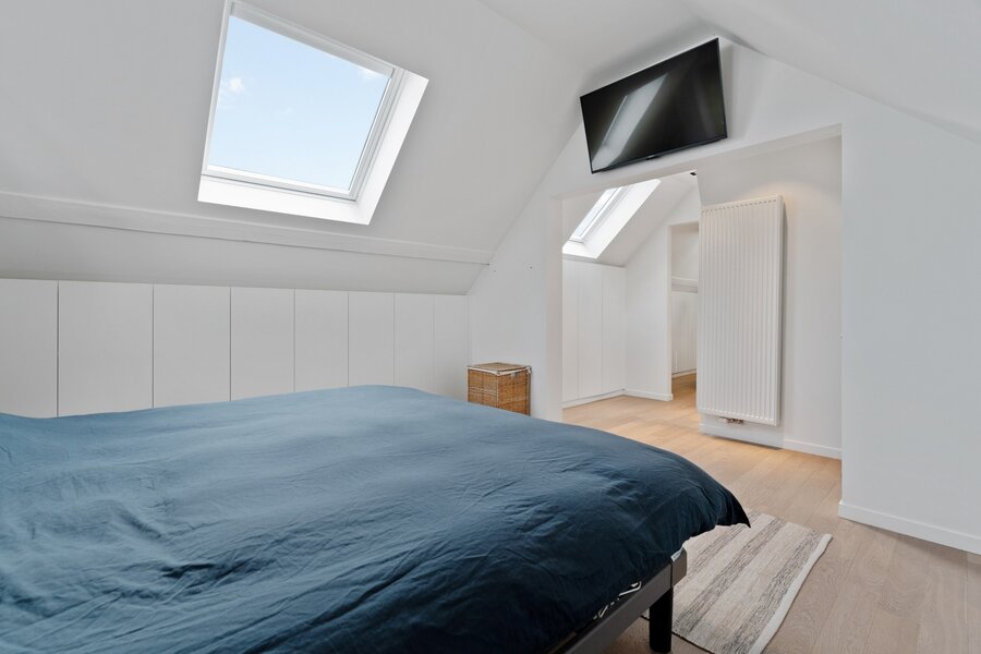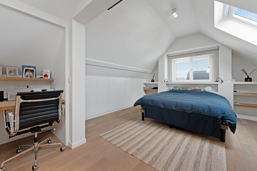 Le deuxième étage est aménagé en suite parentale luxueuse avec placards intégrés et salle de bains attenante avec baignoire, douche à l'italienne, double lavabo et toilettes.