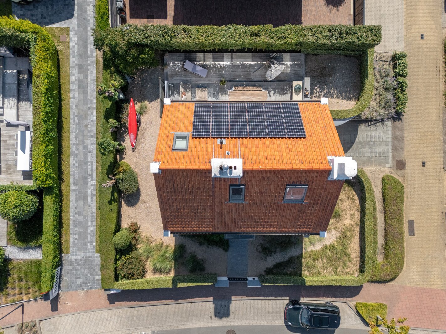 La villa est entièrement sous-sol et offre un espace de stockage supplémentaire. Le garage spacieux est accessible par l'allée. Des panneaux solaires assurent un score PEB favorable et des coûts énergétiques réduits.