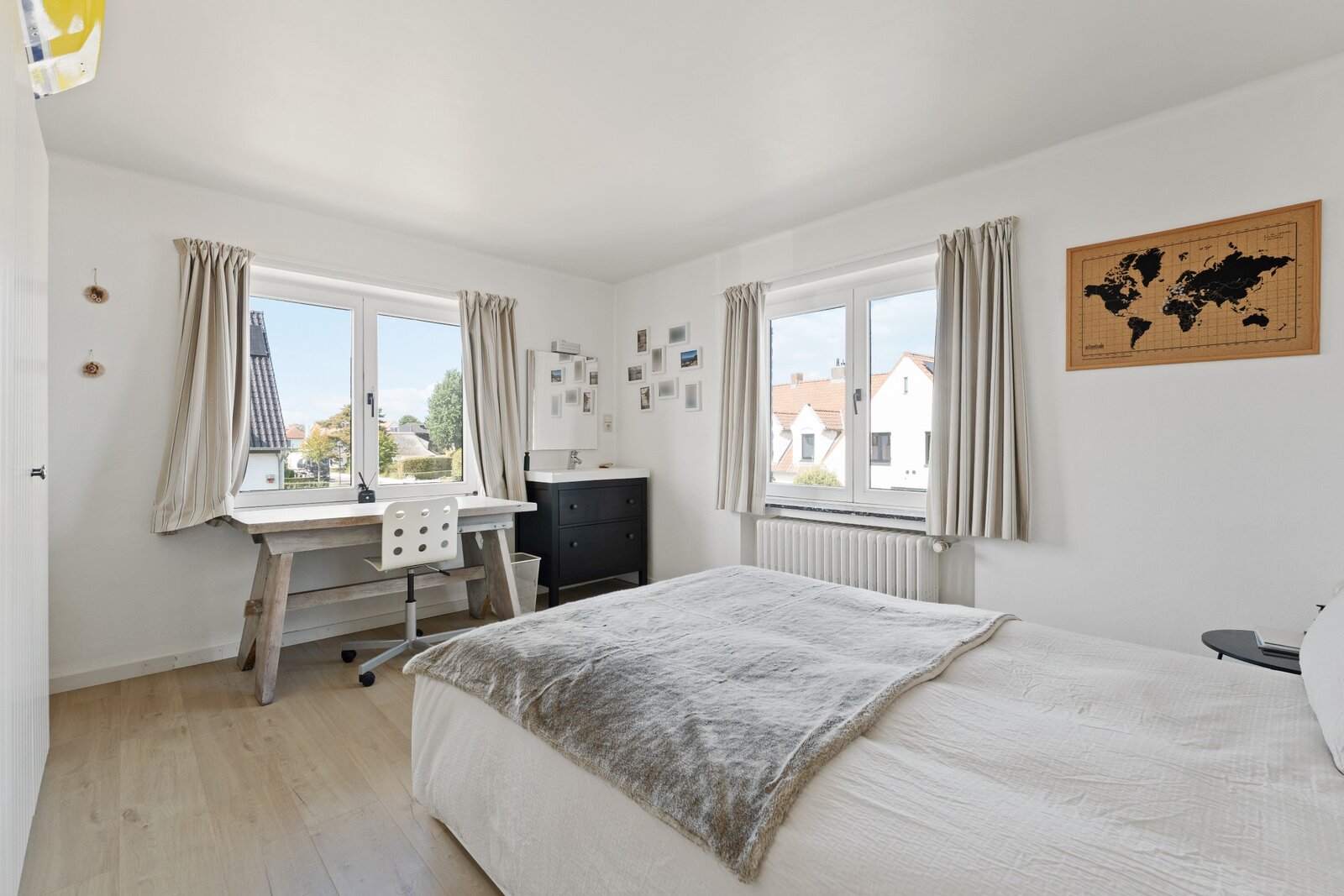 Au premier étage, vous trouverez trois chambres à coucher complètes et une pièce supplémentaire pouvant servir de chambre d'enfant, de bureau ou de dressing. La salle de bains est équipée d'une baignoire avec pare-douche, d'un double lavabo et de toilettes.