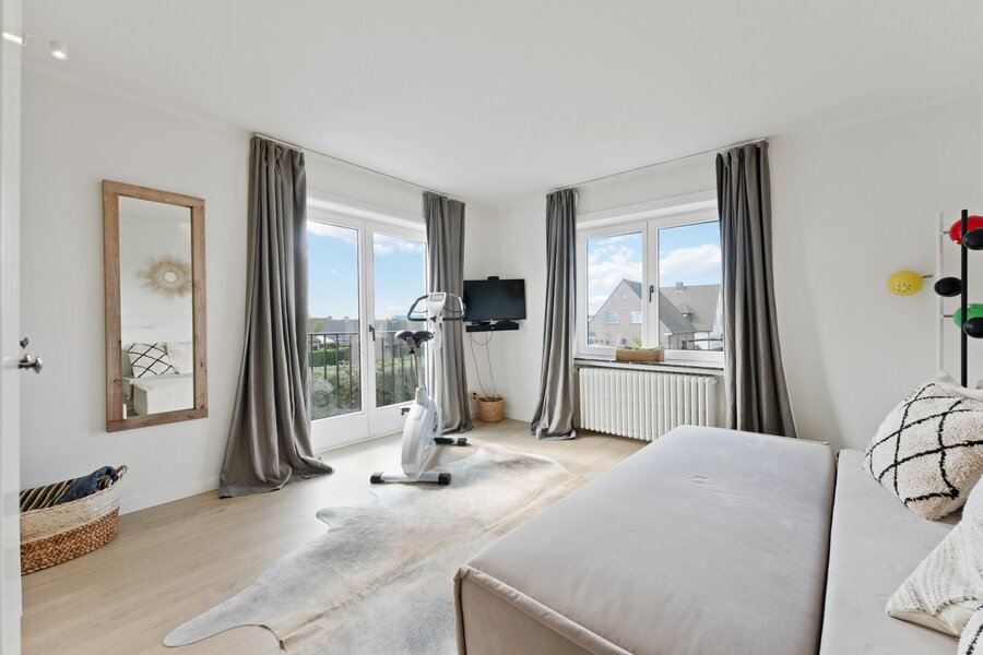 Le charmant hall d'entrée avec toilettes invités mène à un salon lumineux avec espace salon et salle à manger, qui donne sur le jardin ensoleillé et la terrasse accueillante. La cuisine séparée est entièrement équipée et dispose d'un coin repas pratique.