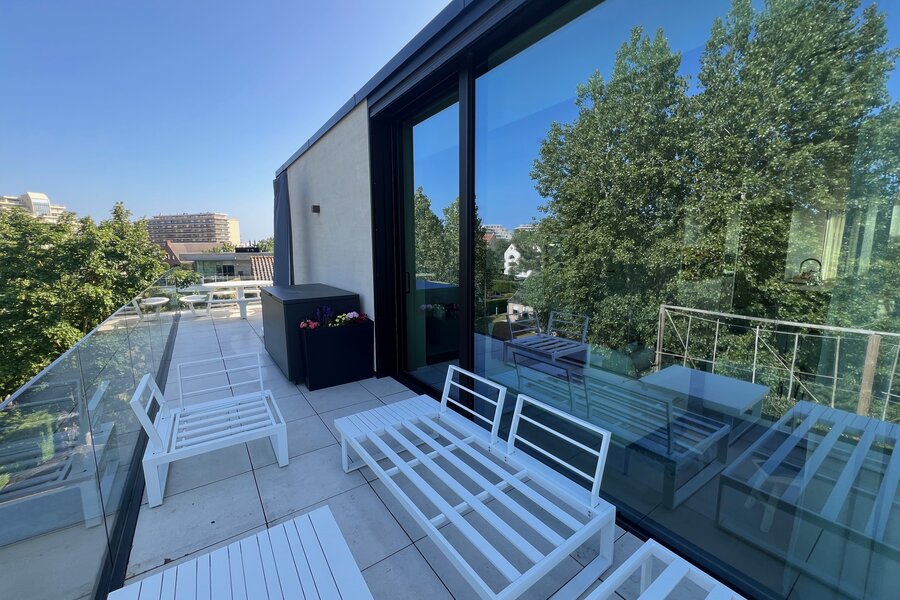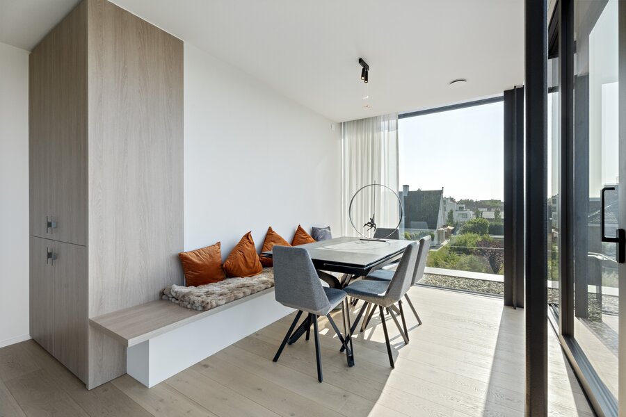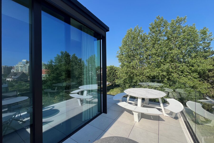 De penthouse is voorzien van royale leefterrassen waar je heerlijk kunt vertoeven. De overgang van binnen naar buiten is naadloos, waardoor je optimaal kunt profiteren van het prachtige zicht en de mooie omgeving.