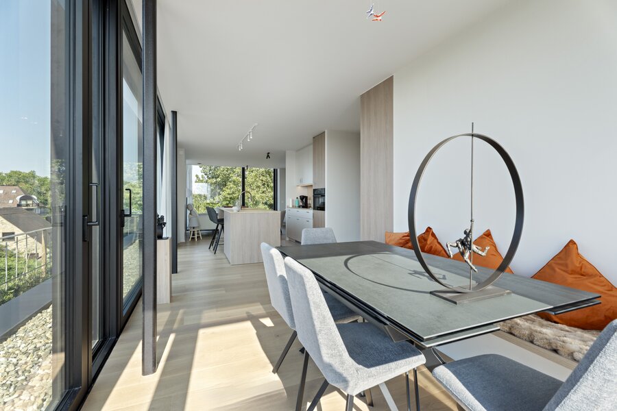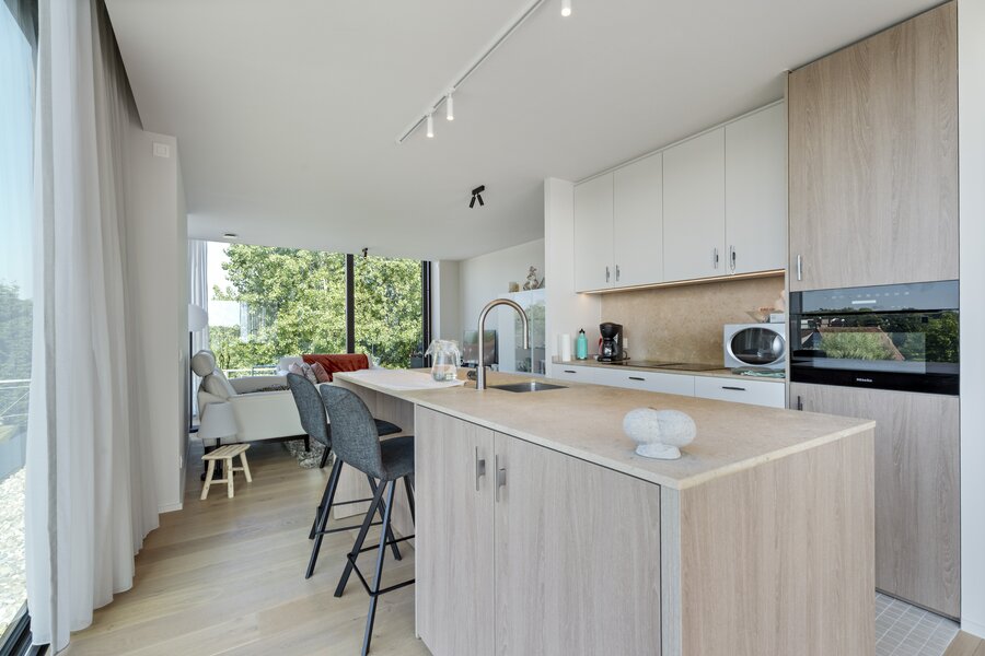 De sublieme afwerking met hoogwaardige materialen is tot in de kleinste details doorgevoerd, van de strakke keuken tot de twee riante slaapkamers, elk met een eigen luxueuze badkamer. Dankzij de uitzonderlijke lichtinval door de vele en grote raampartijen voelt elke ruimte open en uitnodigend aan.