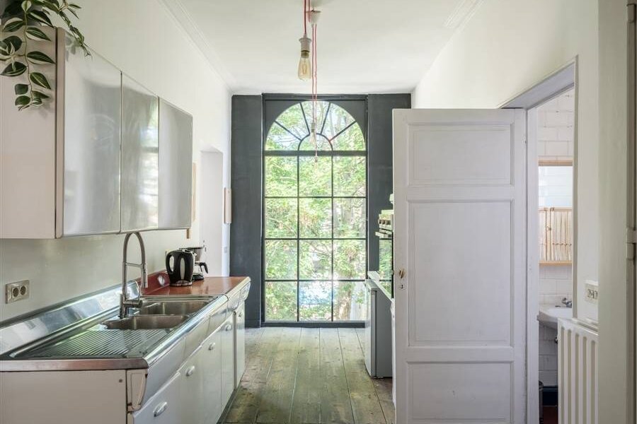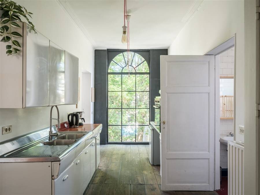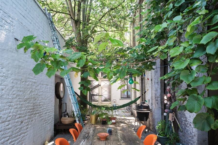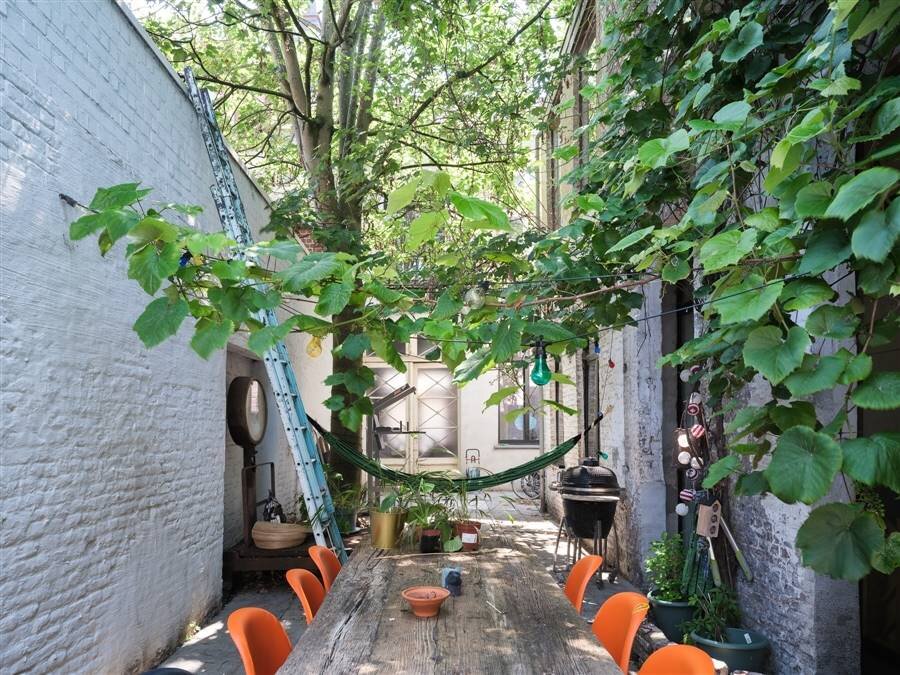 - het woonhuis met ruime stadstuin (gelijkvloers en eerste verdieping achteraan, 3 slaapkamers),