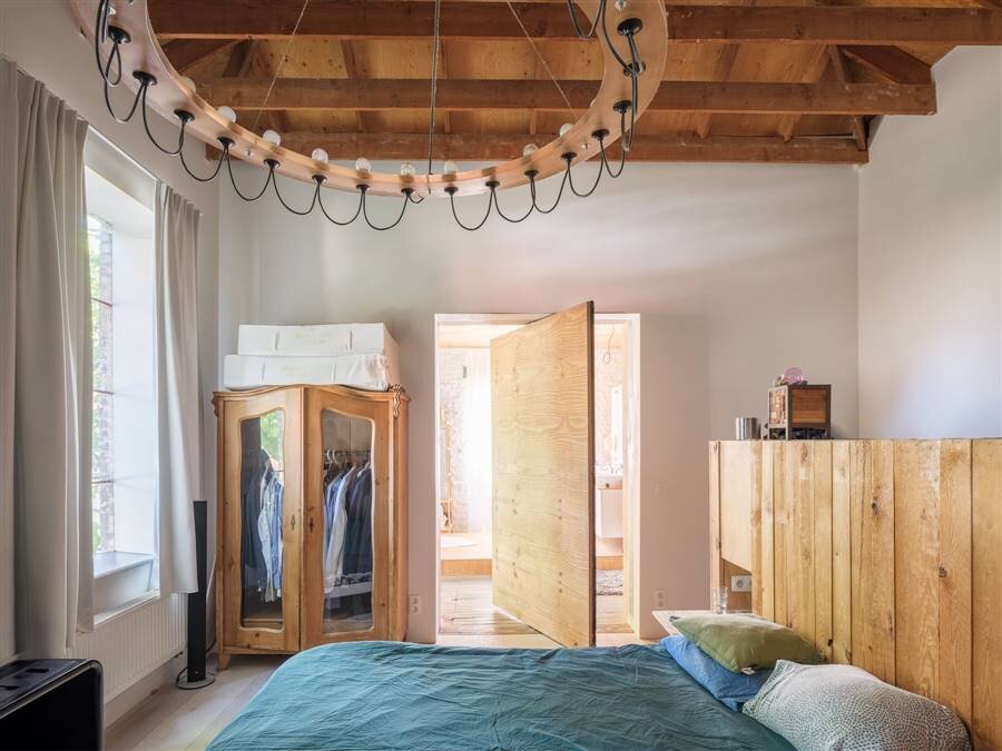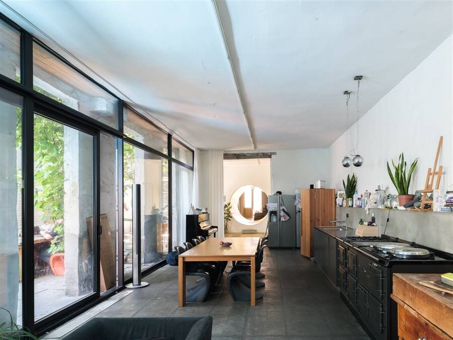 Voor de architecturale vernieuwing van het gelijkvloers en de eerste verdieping tekende Jo Taillieu, met onder meer een indrukwekkende verbinding tussen de leefruimte en het voormalig kunstatelier via een oude graansilo.
