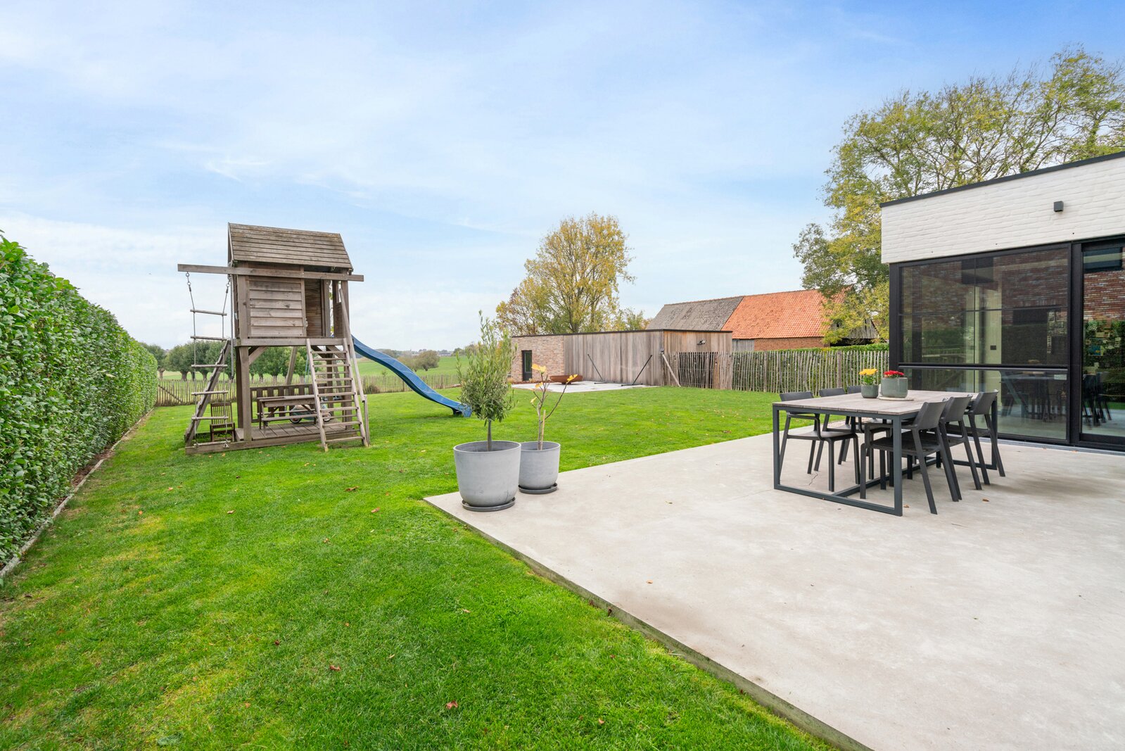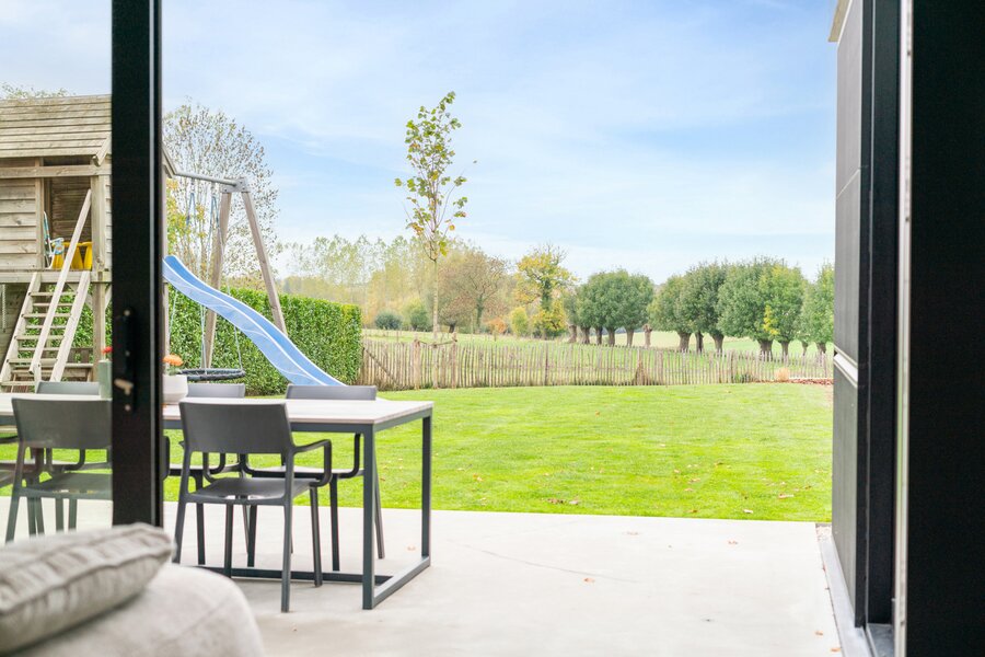 Extra troeven van deze woning zijn de vliegenramen, zonnepanelen, zonneboiler, airco en een laadpaal. Buiten is er een vrijstaande garage met geautomatiseerde poort en een tweede poort aan de achterzijde, waardoor de garage ook via de weide toegankelijk is.