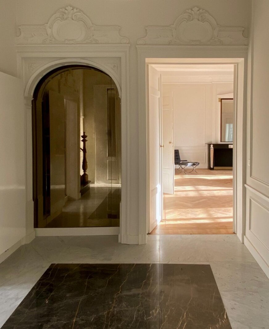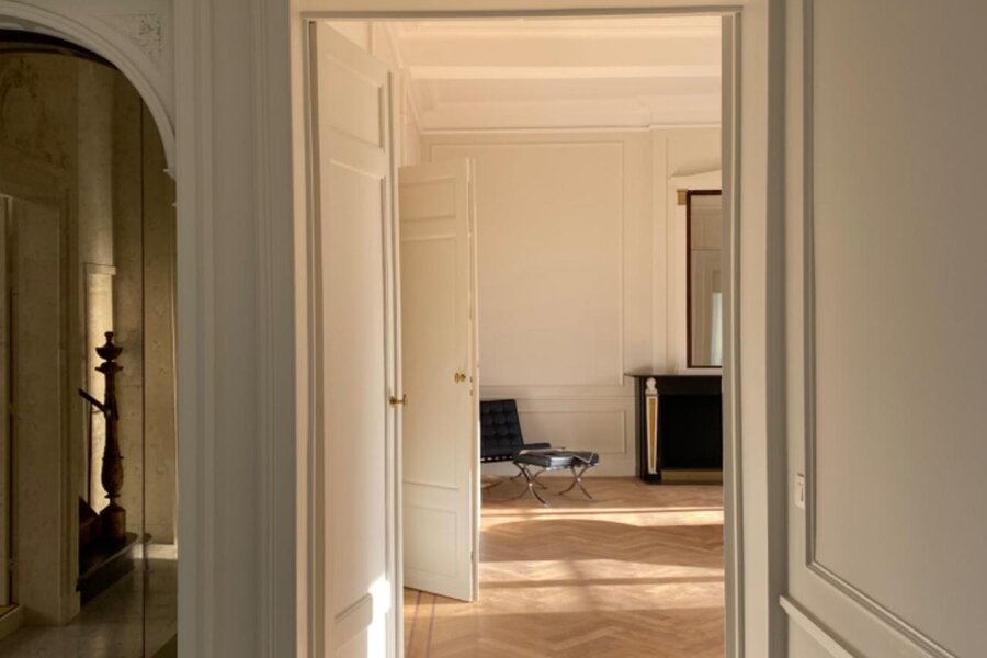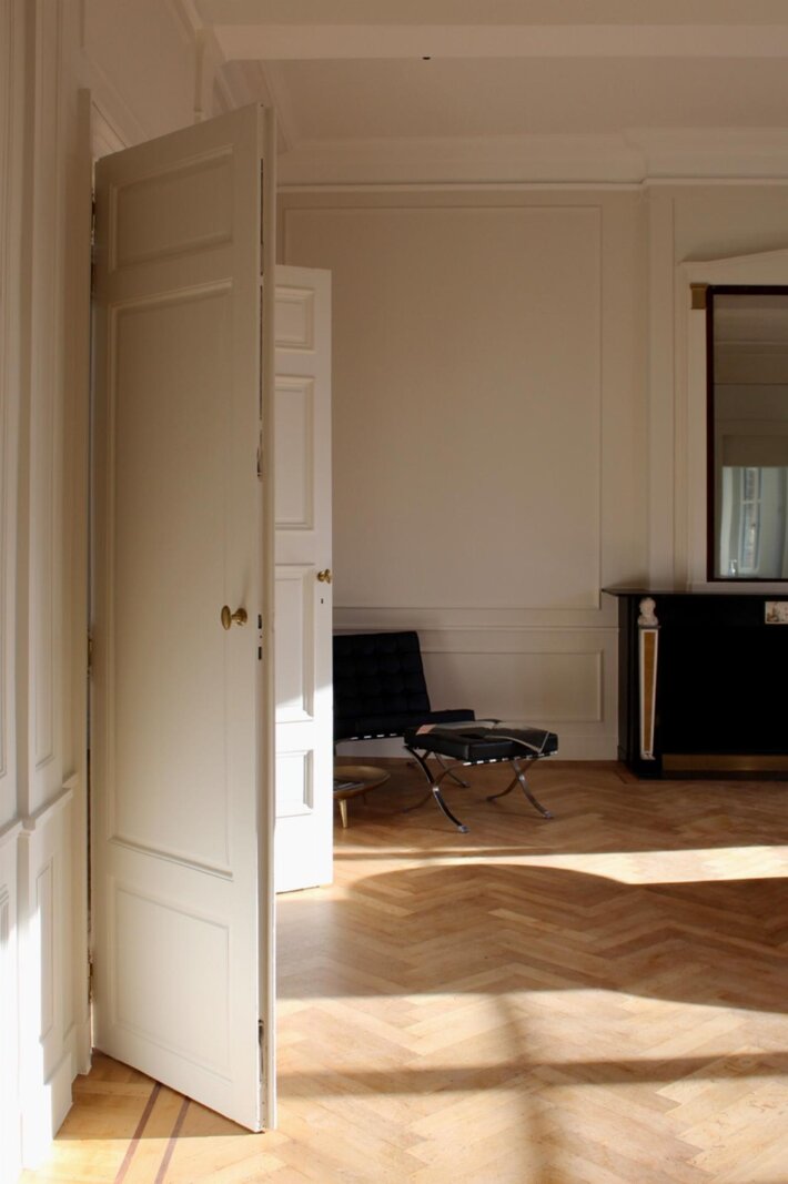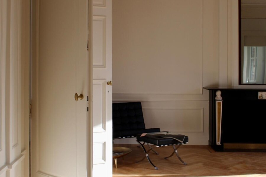 Kamerhoge plafonds, marmer schouwen, authentieke parketten, zuid geörienteerd privaat zonneterras van 30 m2 palend aan de stilte van de verborgen achterzijde in de stad, privacy , ...