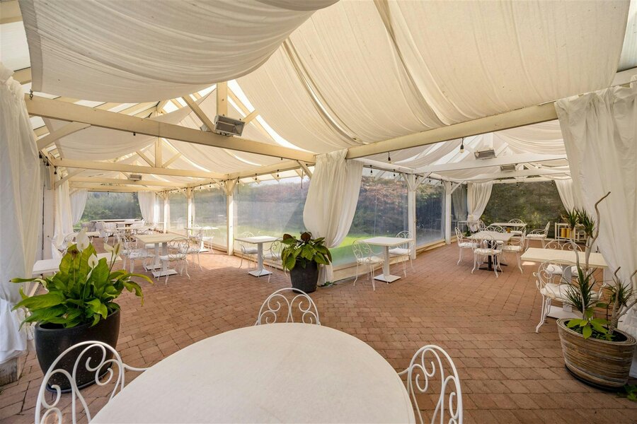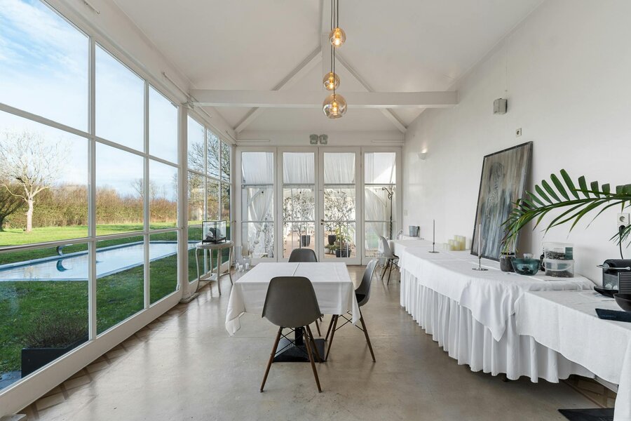 Une opportunité hôtelière prête à l'emploi La section commerciale abrite une entreprise hôtelière pleinement développée qui est immédiatement opérationnelle. L'atmosphère de la salle de restaurant, dotée d'élégantes fenêtres cintrées et de portes vitrées, est empreinte de classe. La cuisine professionnelle est équipée de tous les équipements nécessaires, y compris une chambre froide. Cerise sur le gâteau, la spacieuse terrasse couverte est l'endroit idéal pour recevoir des invités dans un cadre verdoyant et relaxant.