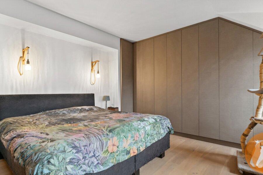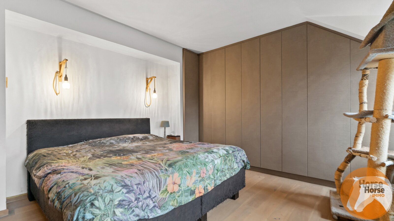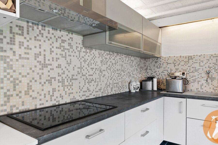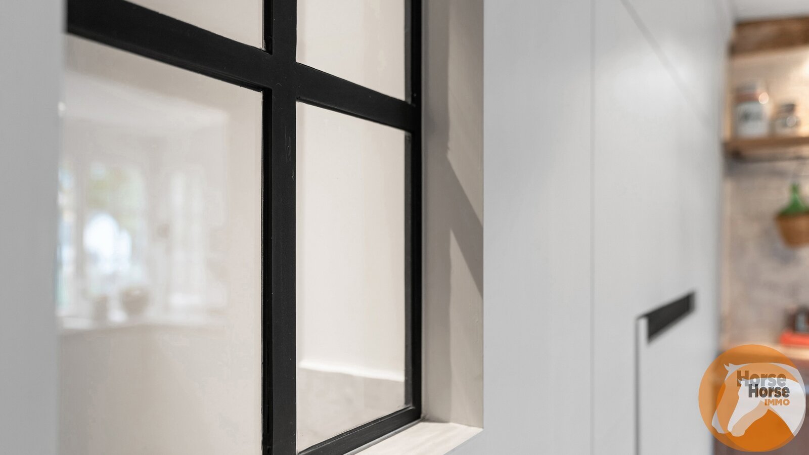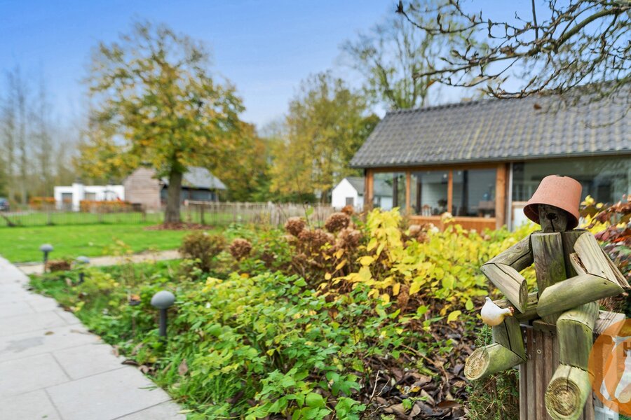 Binnen straalt de woning rust en stijl uit. De leefruimtes vloeien naadloos in elkaar over en baden in natuurlijk licht dankzij de grote raampartijen die het omliggende landschap letterlijk binnenhalen. De keuken, die zelfs werd opgenomen in Landelijk Wonen, combineert traditioneel vakmanschap met moderne luxe en is afgewerkt met onder meer Rouge Belge-marmer en authentieke vloertegels. Het hart van het huis is ongetwijfeld de sfeervolle zithoek, waar een houtkachel voor warmte en gezelligheid zorgt, perfect voor knusse avonden met zicht op de tuin.