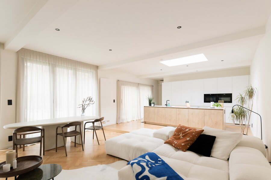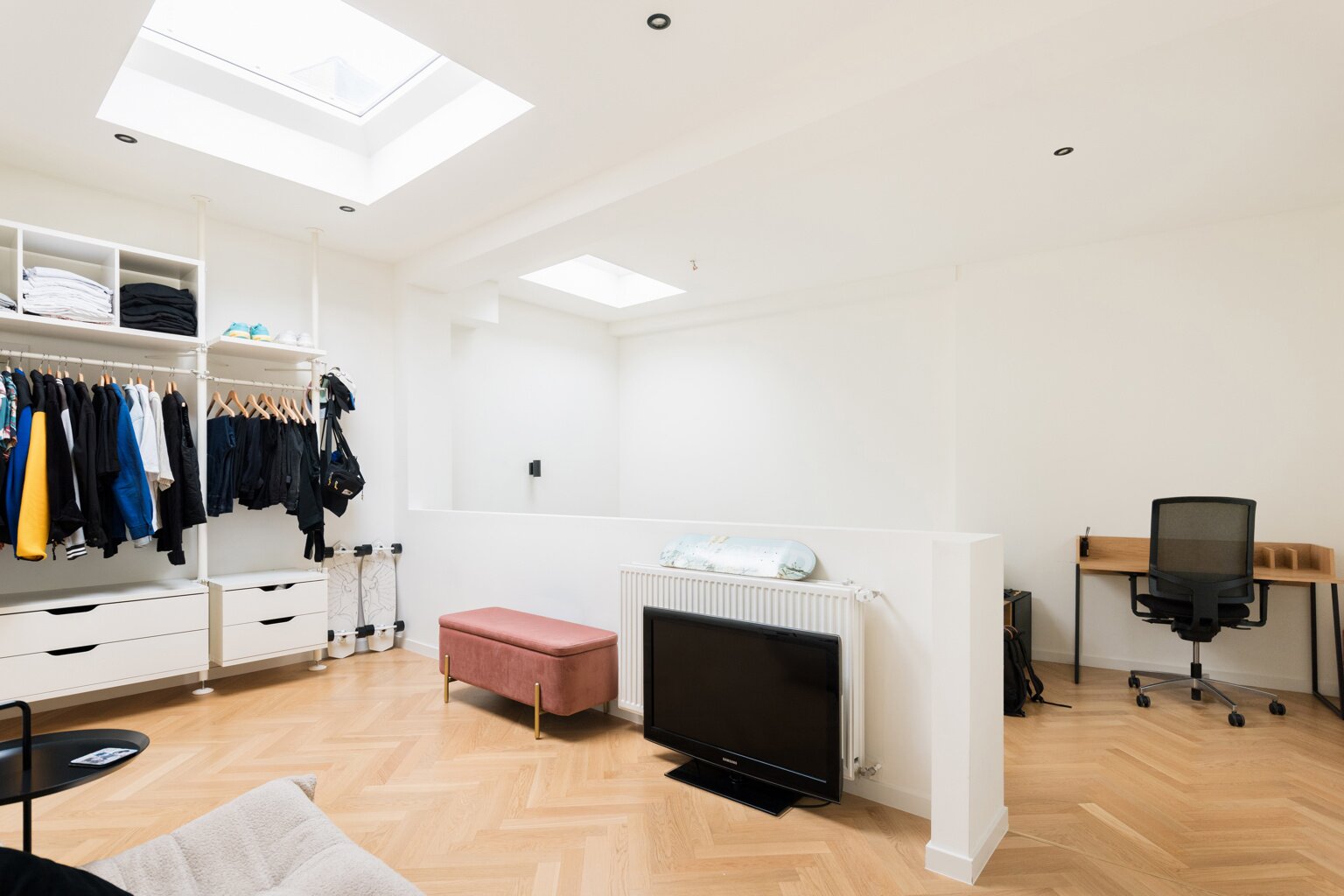 C'est dans le centre animé d'Anvers que se trouve ce loft exceptionnel : un lieu lumineux et élégant où authenticité et confort contemporain se rencontrent. La maison fait partie d'un ancien entrepôt qui a été entièrement rénové en 2023. Un hall d'entrée privé avec escalier mène au loft XL au premier étage, avec un agencement bien pensé et des finitions élégantes. L'espace de vie ouvert avec parquet à chevrons respire la convivialité, une rangée infinie de fenêtres inonde l'intérieur de lumière naturelle, tandis que la cuisine ouverte avec salon et salle à manger attenants donne sur la terrasse spacieuse et le toit végétalisé luxuriant de 132 m² - un endroit ouvert et calme au cœur de la ville. Derrière la cuisine, une arrière-cuisine pratique offre un confort supplémentaire. La chambre semi-ouverte et la salle de bains spacieuse avec douche à l'italienne et double lavabo complètent le tableau. Avec un EPC favorable, de faibles coûts d'entretien et la possibilité d'acheter un garage et une place de parking séparés, ce loft allie la vie urbaine à une tranquillité agréable.