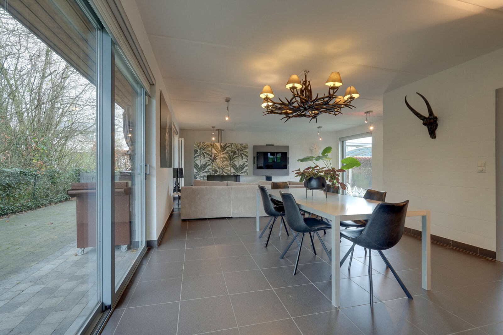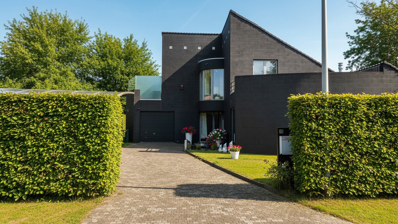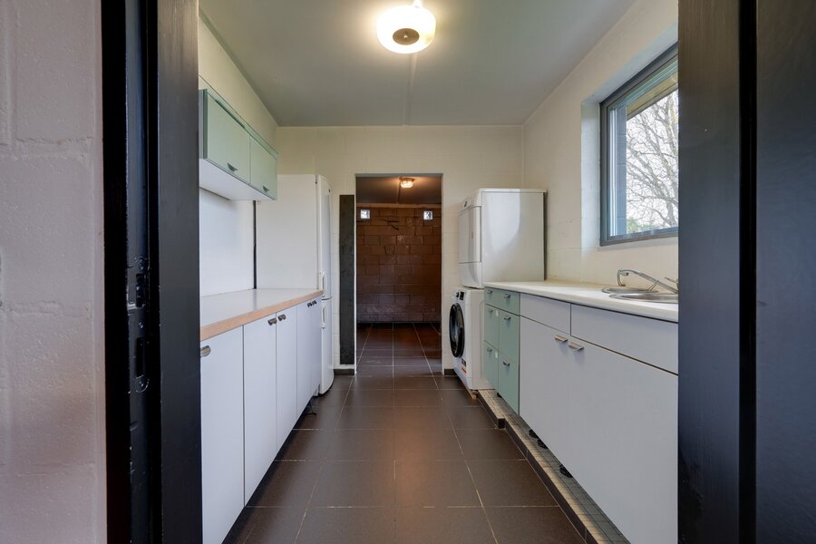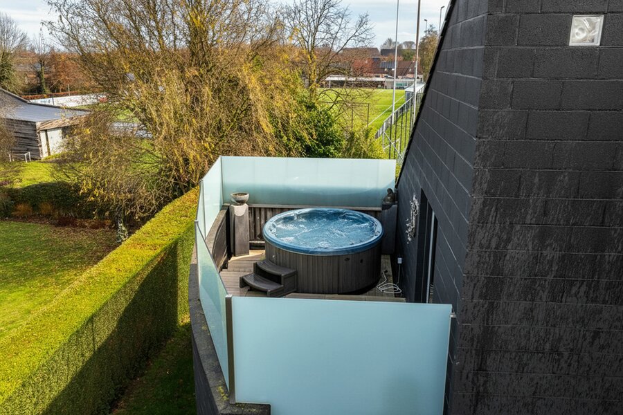 À l’extérieur, vous profitez pleinement du jardin orienté sud-ouest et de la grande terrasse d’environ 40 m², idéale pour les longues soirées d’été en toute intimité. Un abri de jardin, un garage pour une voiture et une citerne d’eau de pluie de 10.000 litres viennent parfaire l’ensemble.