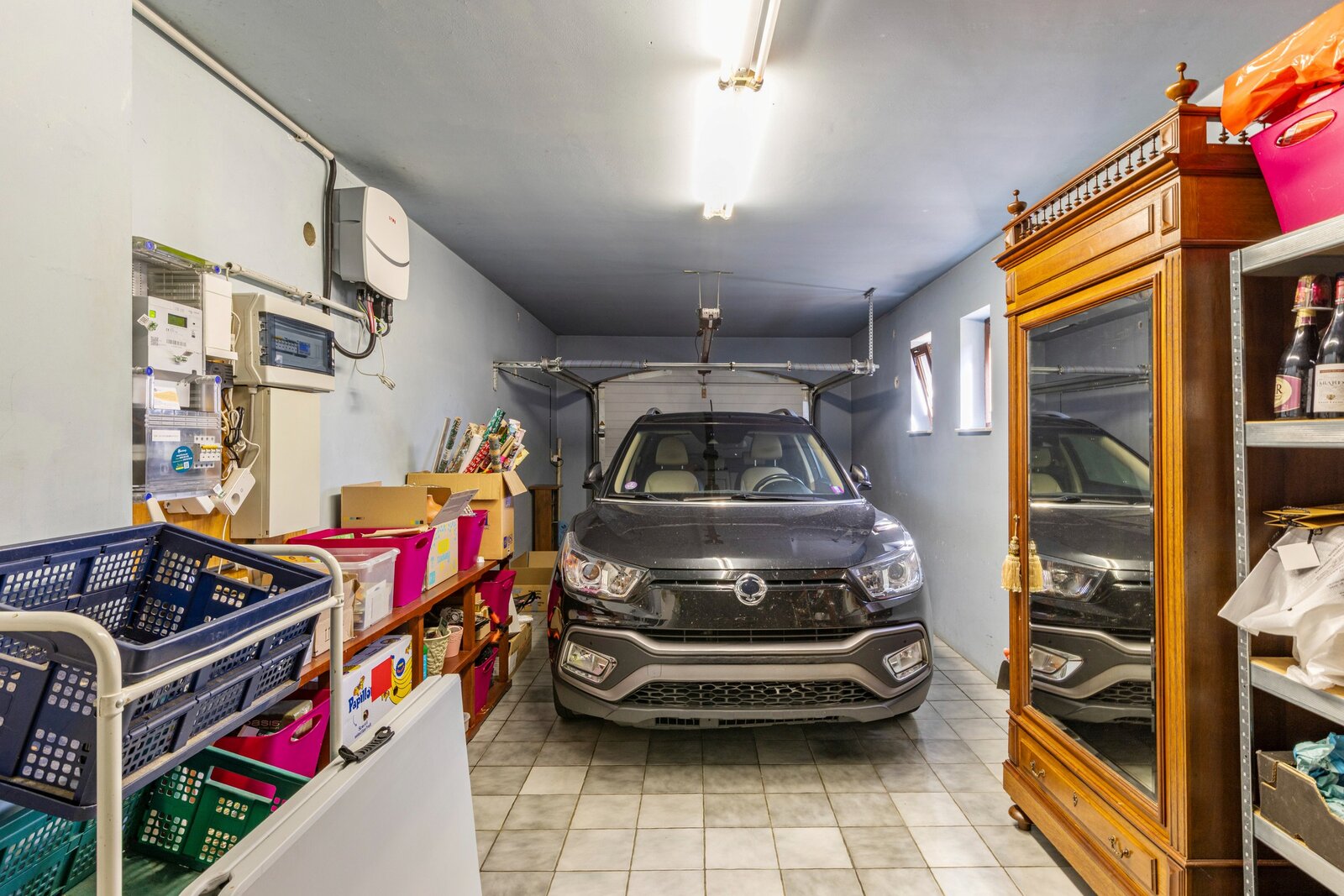 Ruime inkomhal heeft zowel toegang tot de lichtrijke leefruimte en de dubbele inpandige garage/wasplaats en toegang tot de ruime kelder.