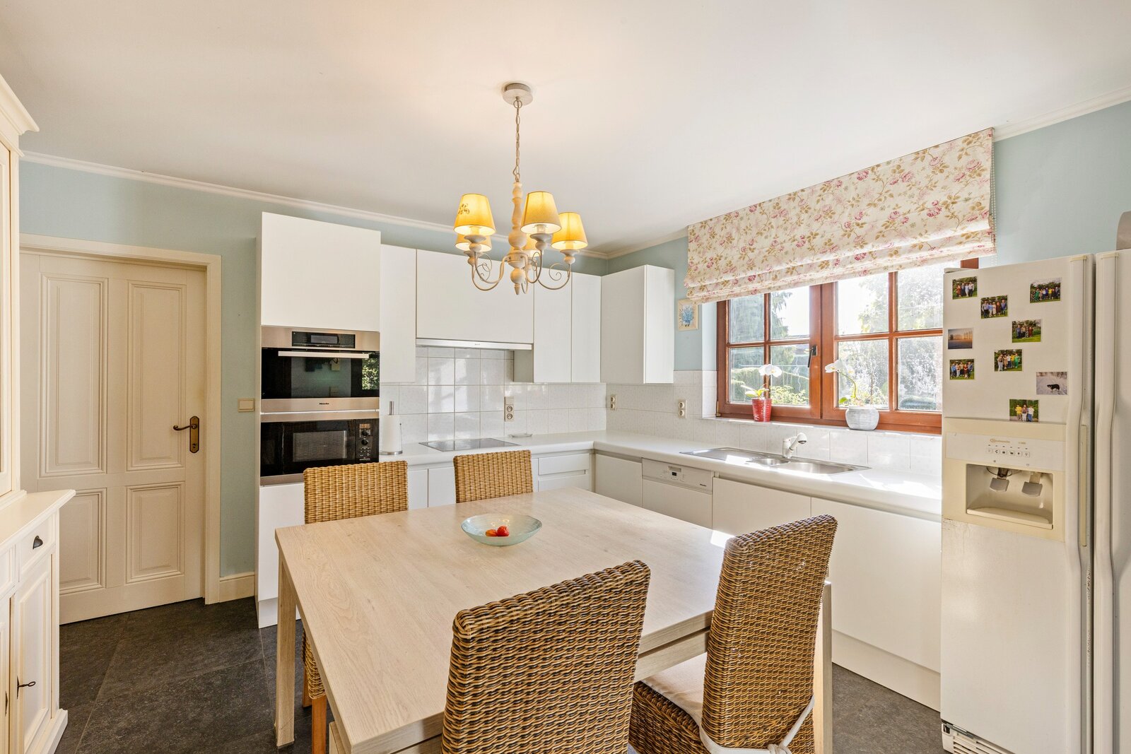 Verder is er de aansluitende eet-leefkeuken die mooi uitgerust is en centraal in de woning ligt. De bijkeuken/wasplaats zorgt voor een extra praktische touch en sluit dan weer aan aan de dubbele inpandige garage. Tussen de hal en de keuken ligt de recent vernieuwde badkamer.