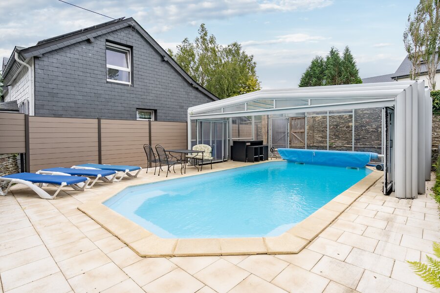 Avantages majeurs : installation électrique conforme, 31 panneaux photovoltaïques pour une efficacité énergétique remarquable, piscine couverte, certificat PEB classé C.