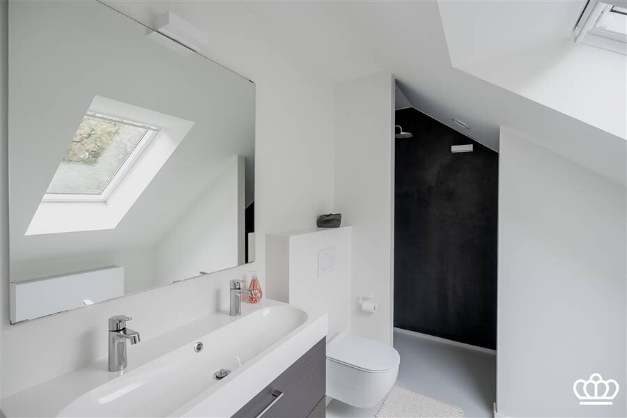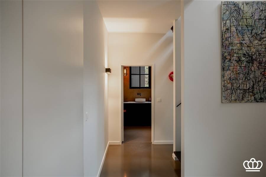 Via een stalen trap vanuit de inkomhal toegang tot de nachthal met vide die uitgeeft op de masterbedroom bestaande uit een slaapkamer, een en suite dressing en volledig ingerichte badkamer. Verder op deze verdieping nog twee slaapkamers met elk een en suite badkamer en ingemaakte kasten, een logeerkamer en een wasplaats.