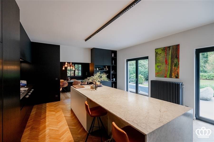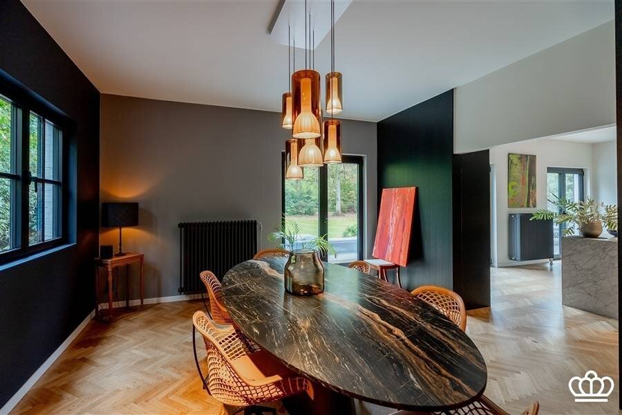 Statige luxe villa, gelegen in Kapellenbos, recent volledig gerenoveerd in modern-klassieke stijl met o.a. open en lichtrijke leefruimtes, 5 slaapkamers, 4 badkamers en een groot apart kantoor, mooi ingepland op een Zuid-West gericht perceel van ca. 3.300 m2 met groot buitenzwembad en een carport.