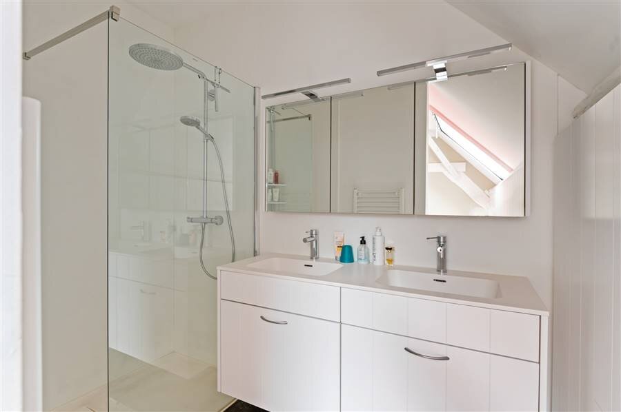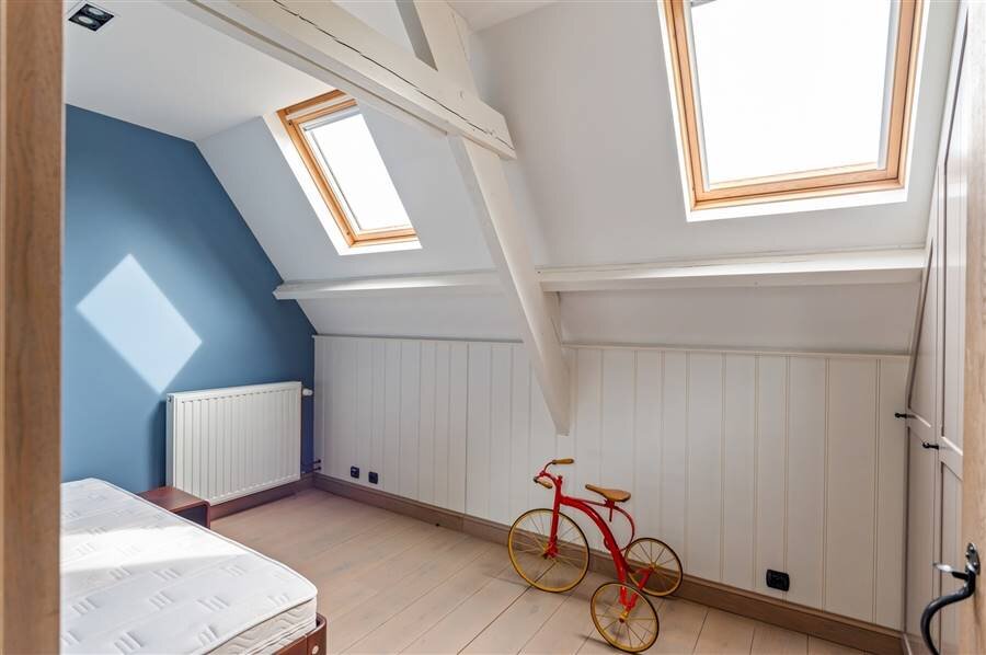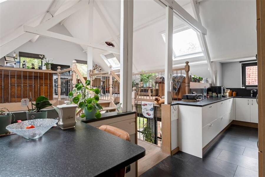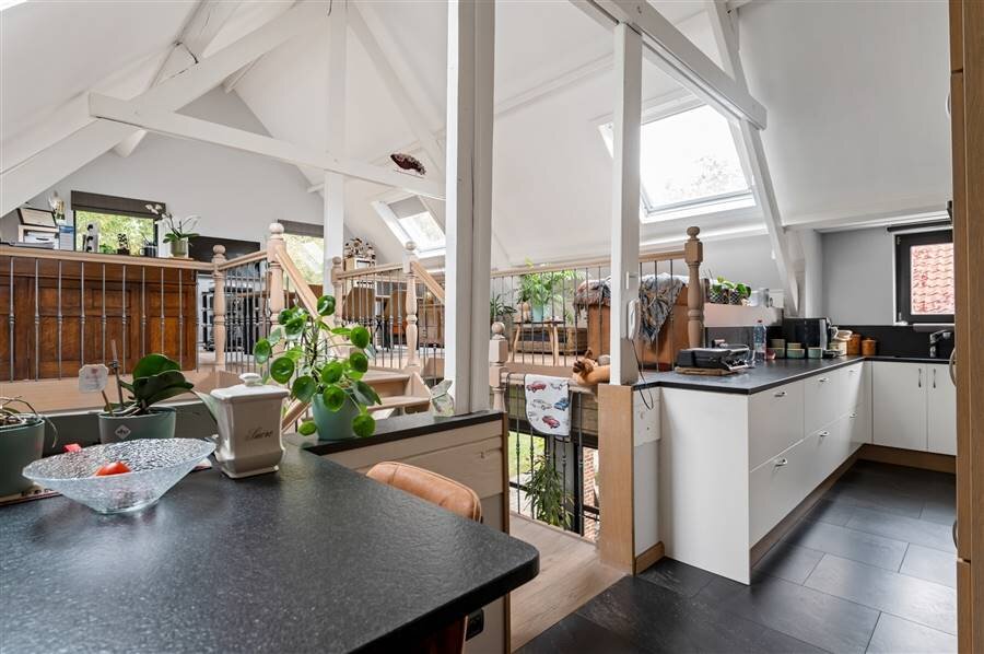 De tweede woning is gelijkaardig ingedeeld en biedt eveneens een woon- en eetruimte, een praktische keuken, één badkamer, twee slaapkamers, een grote zolder en een atelier ideaal voor een zelfstandige of creatieve ondernemer.
