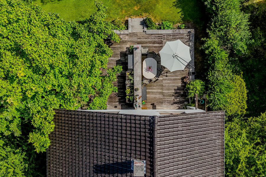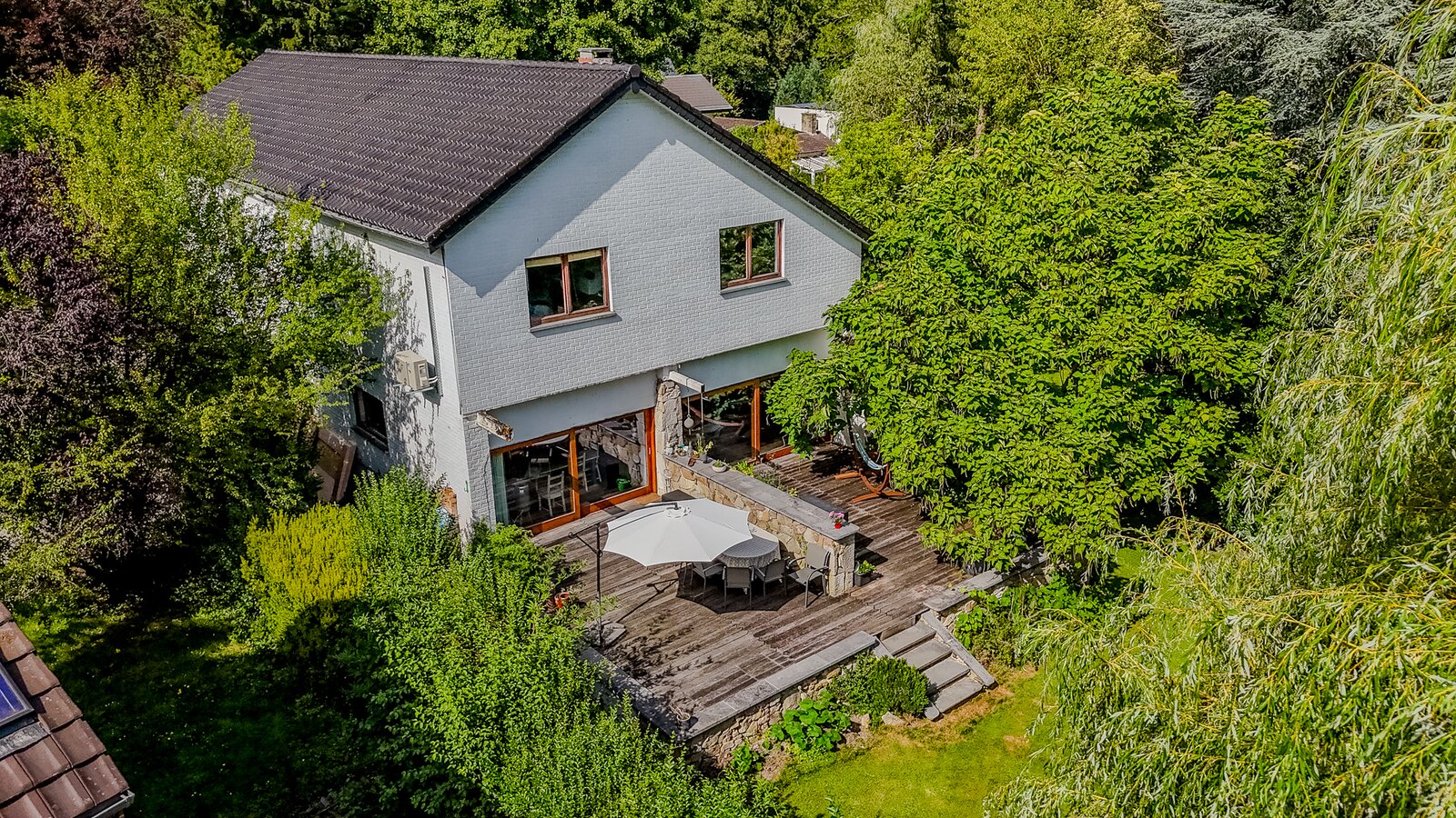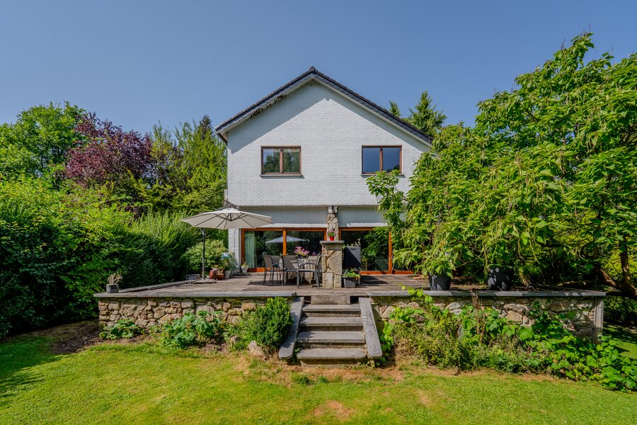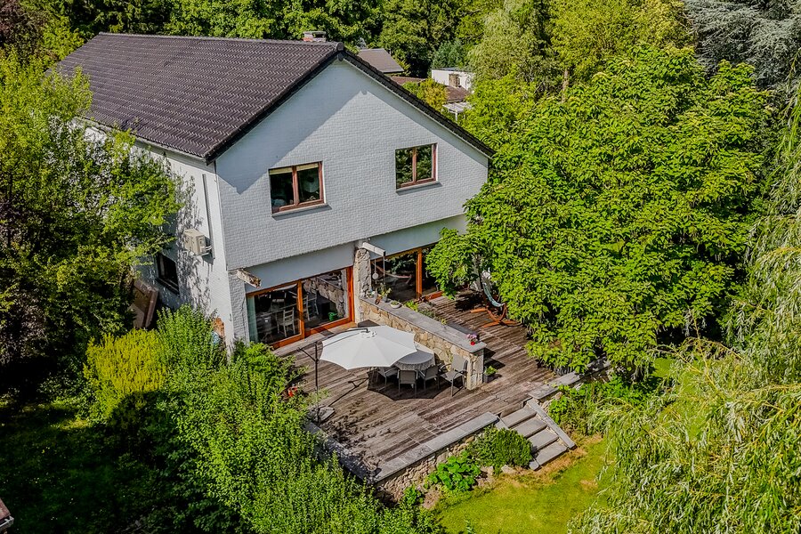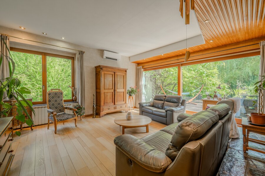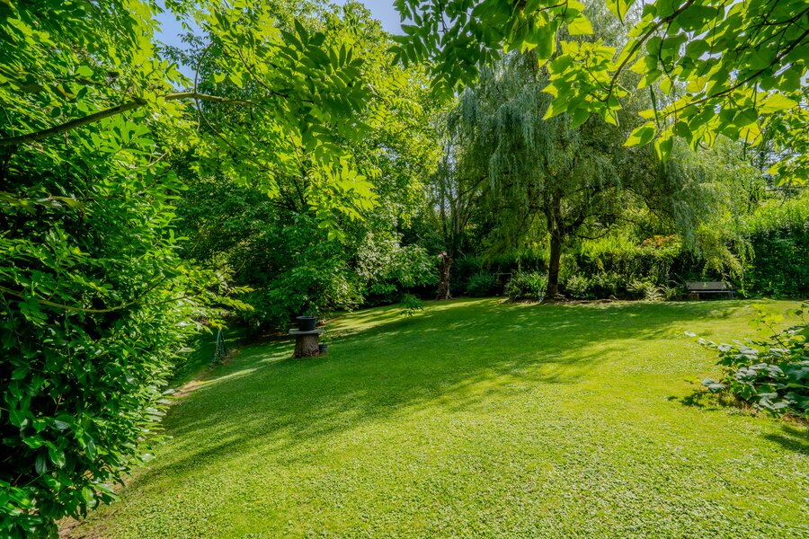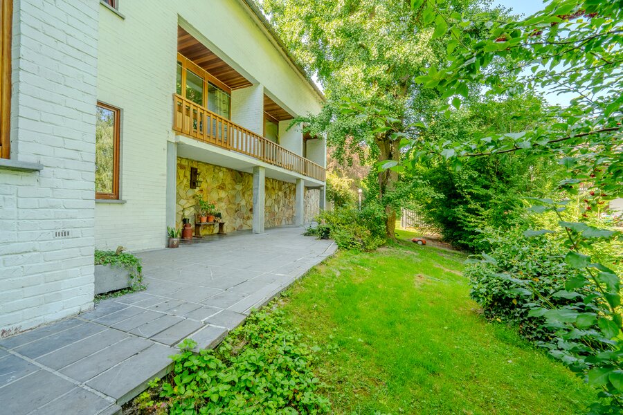 Le tout s’ouvre sur un magnifique jardin orienté plein sud, agrémenté d’un point d’eau, d’une grande terrasse et d’un accès direct au Domaine du Sart-Tilman.