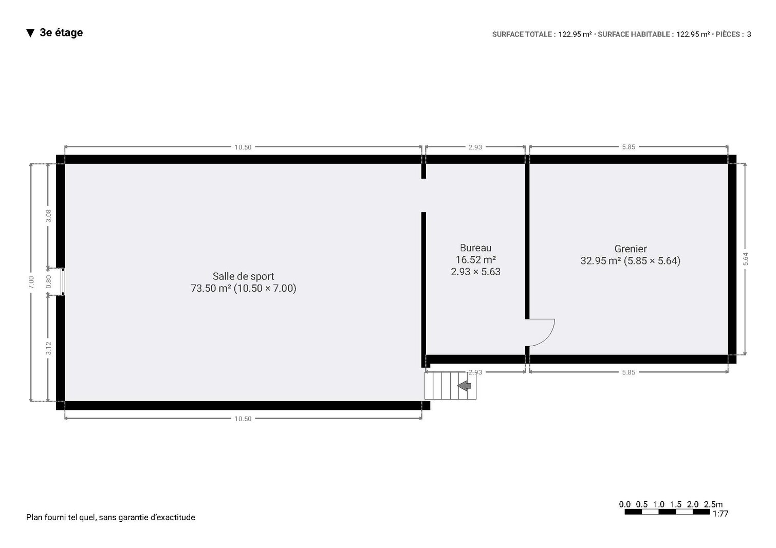 Au troisième étage, un vaste plateau polyvalent de plus de 70 m² offre un potentiel d’aménagement exceptionnel : chambres supplémentaires, bureau, salle de sport, espace loisirs ou encore espace professionnel, ainsi qu'un grenier.