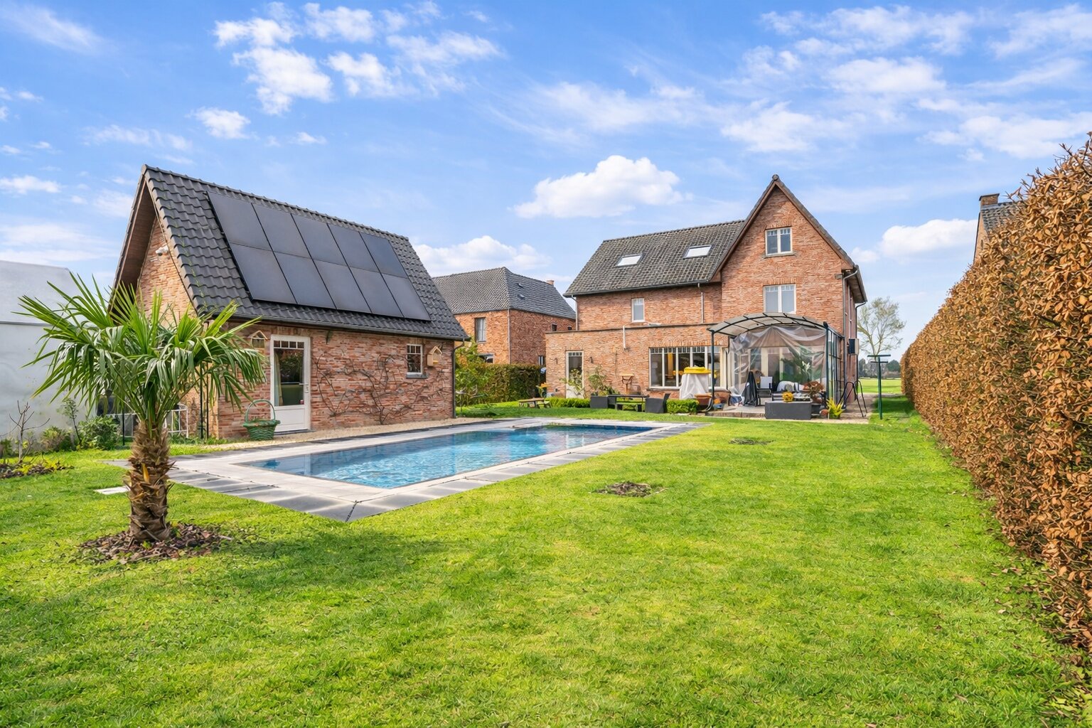Cette spacieuse propriété (construction 2006) offre 7 chambres, 2 salles de bain et un garage intégré. Le jardin magnifiquement aménagé dispose d'une piscine chauffée et d'une grande maison de jardin, idéale pour se détendre et profiter de l'extérieur. Avec un label EPC A et toutes les commodités modernes, vous bénéficiez d'un confort optimal et d'une excellente efficacité énergétique.