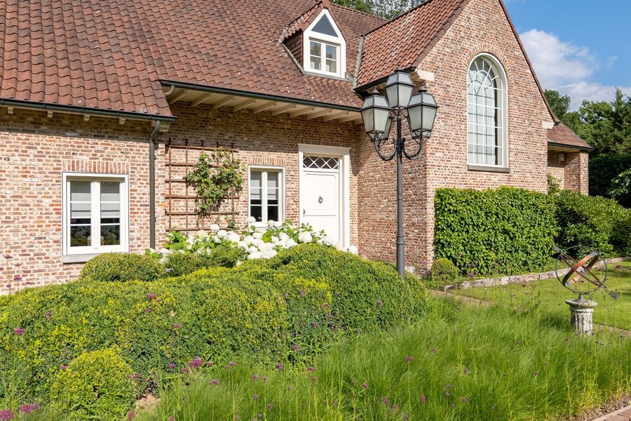 De gezellige voortuin met voldoende parkeergelegenheid brengt u tot de voordeur van deze riante villa. Bij het betreden van de inkomhal ervaart u onmiddellijk de gezellige sfeer. De inkomhal reikt tot de eerste verdieping en vormt het centrale hart van deze villa.