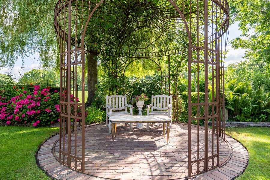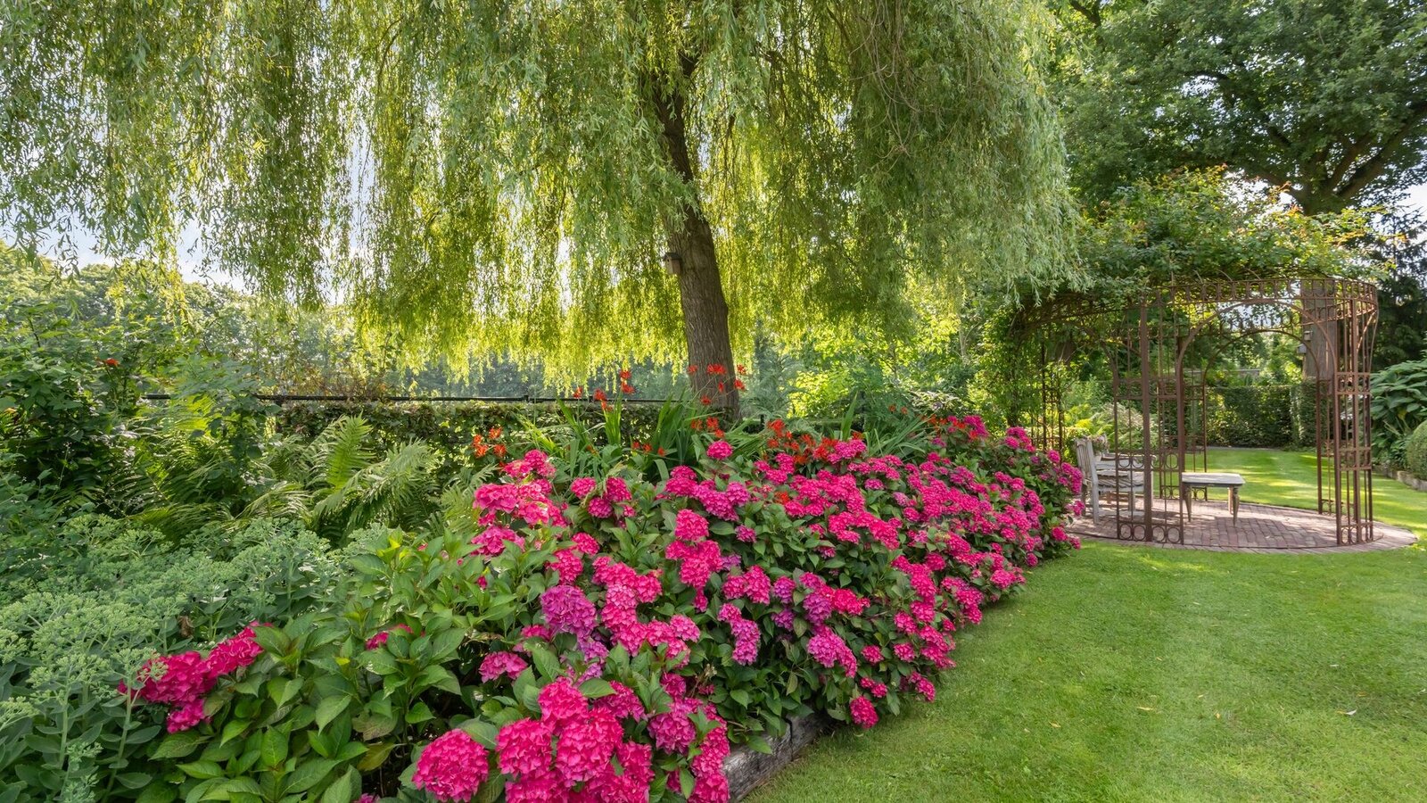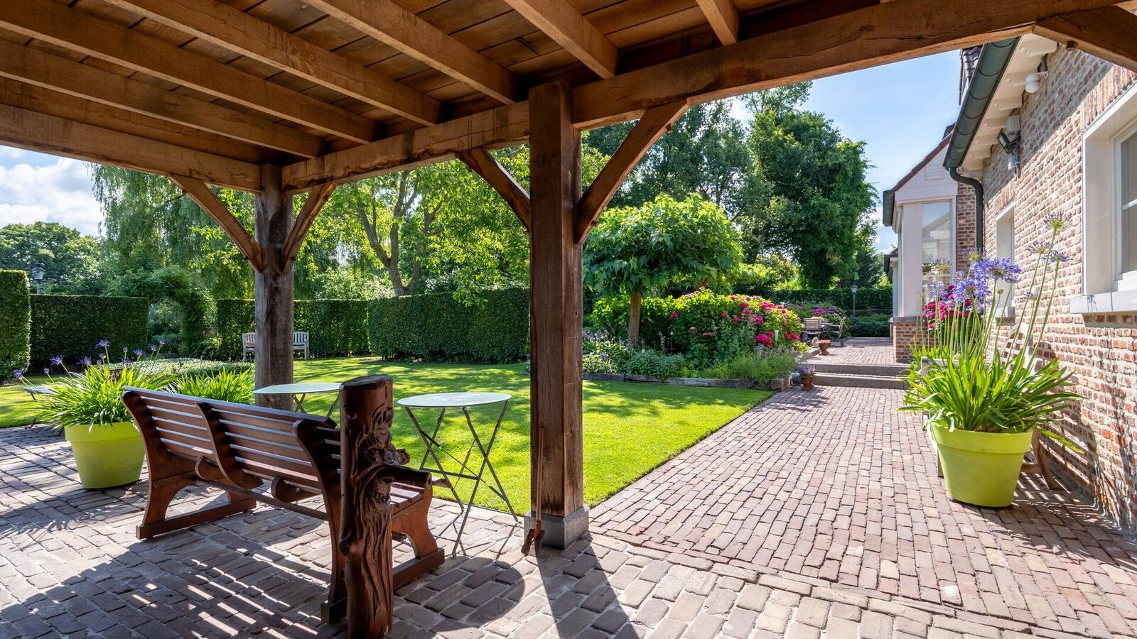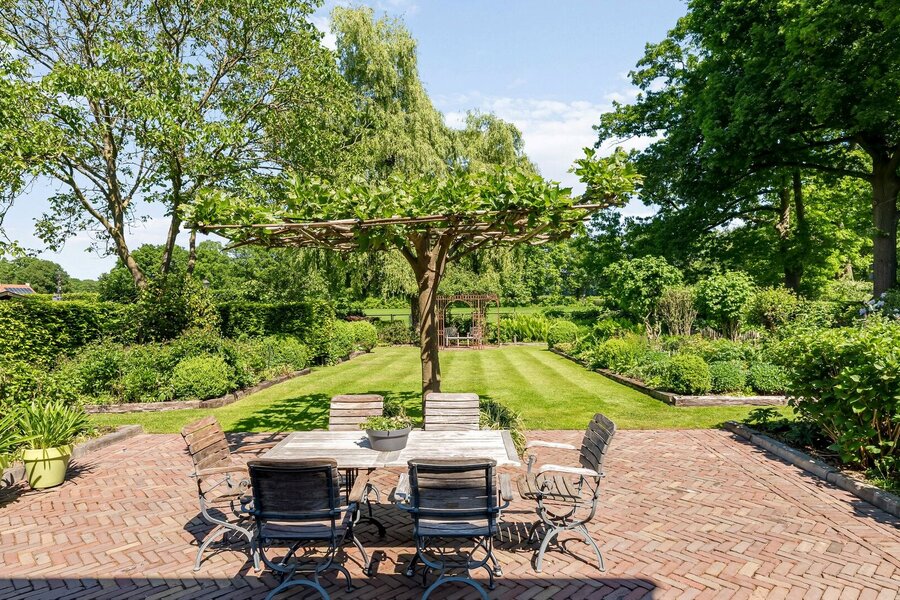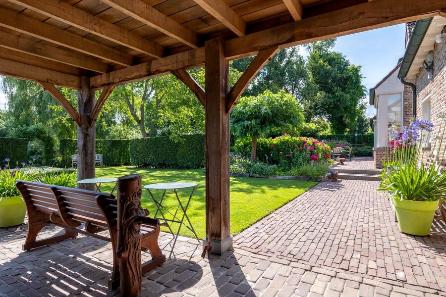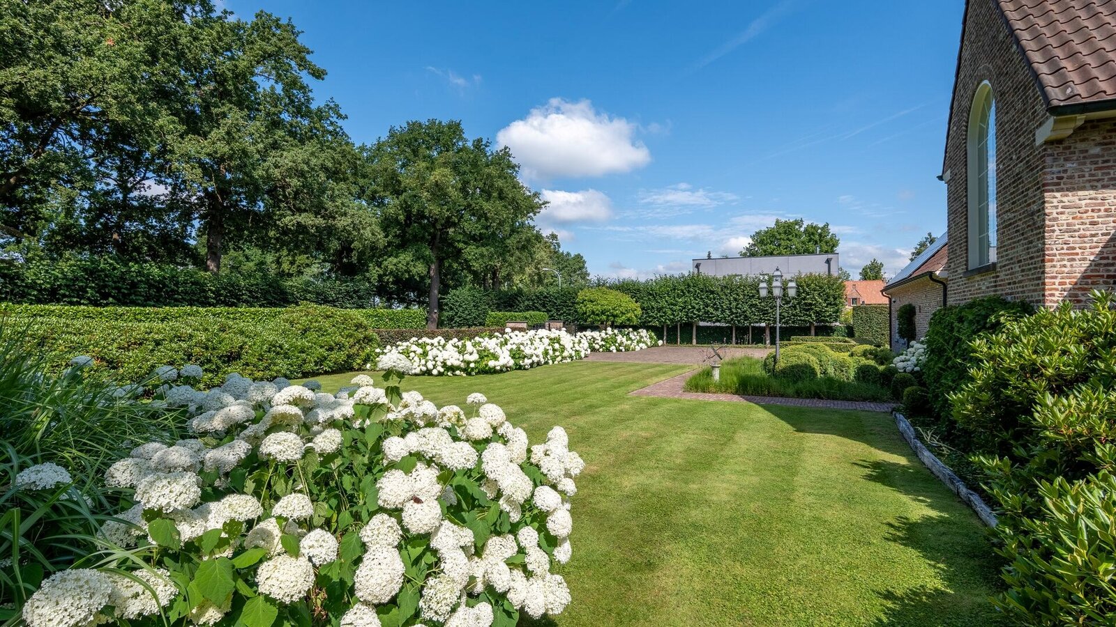 De oost gerichte tuin is schitterend aangelegd, geniet van bomen, veel groen, absolute rust en privacy en is voorzien van diverse terrassen. Verder nog een praktische tuinberging en een ruime overkapping/terras aanwezig. De tuin is volledig omheind en vooraan afgesloten met een automatische toegangspoort.