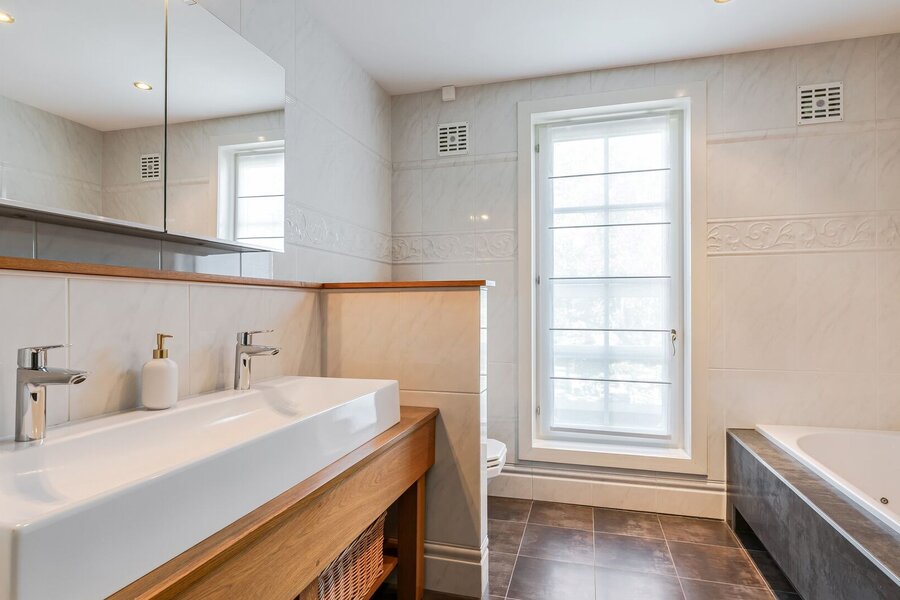 Verder nog vier ruime slaapkamers met veel lichtinval. De tweede badkamer op deze verdieping is voorzien van ligbad en dubbele lavabo in meubel.