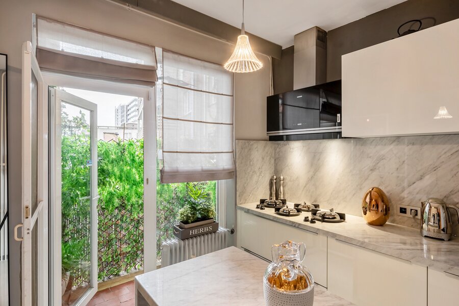 - Toegang vanuit de keuken tot het tweede terras