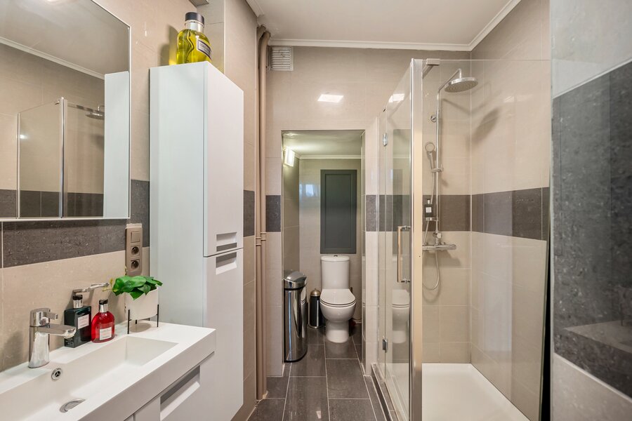 - Badkamer met wastafel, douche en toilet