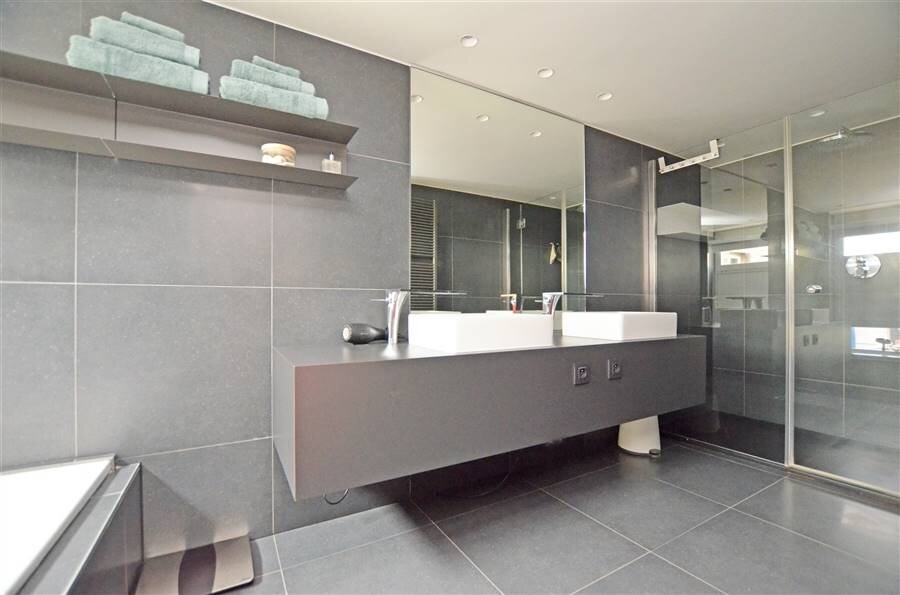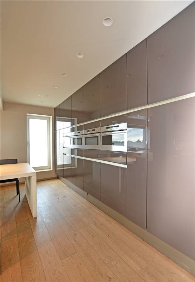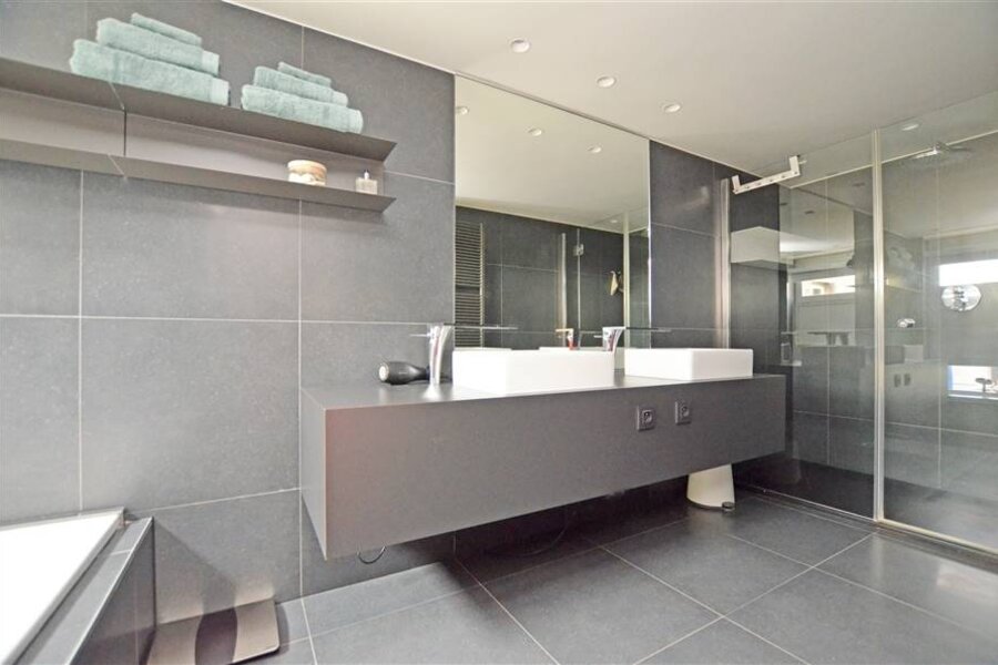Dit exclusieve penthouse, gelegen op de achtste verdieping, werd volledig gestript en heringericht in ±2007-2008 met focus op ruimtebeleving en duurzame kwaliteitsmaterialen. De grote troeven van dit appartement zijn de bewoonbare oppervlakte, het ruime terras met panoramisch zicht, veel natuurlijk daglicht en privacy. Het leefgedeelte is een open aaneenschakeling van een ruime zithoek, een bibliotheek, een eetplaats en een leefkeuken van Siematic. Deze is volledig geïnstalleerd naar hedendaags comfort met een ontbijthoek en ATAG-toestellen (stoomoven, heteluchtoven, combi-oven, microgolf, vaatwasser, 5-pit inductiekookplaat, Novy dampkap, …). De open keuken zorgt voor een leuke connectie met de eetplaats. Een aangename woonsfeer en ruimtegevoel worden gecreëerd dankzij hoge plafonds en veel lichtinval. Het nachtgedeelte omvat een mastergedeelte met inbouwkasten en een ensuite badkamer met ligbad, inloopdouche en dubbele wastafel. Daarnaast is er een tweede slaapkamer met inbouwkasten, een bureelruimte die omgevormd kan worden tot derde slaapkamer en een zithoek. Deze zithoek kan mogelijks ook omgevormd worden zodat het appartement over vier slaapkamers beschikt. Verder is er een tweede badkamer met ligbad en wastafel, een apart toilet, een kleine berging en een ruime wasplaats. Uitzonderlijk is het terras van maar liefst 150m². Door de gunstige oriëntatie kunt u heel de dag genieten van volledige privacy en een prachtig vergezicht over heel Hasselt. Op het terras is er nog een berging van 18m², ideaal als extra stockageruimte. Er zijn twee ondergrondse garageboxen optioneel aan te kopen aan 30 000,- per stuk. Gemeenschappelijke kosten per maand: ± 350,- EUR per maand inclusief verwarming en warm water inbegrepen. Extra’s: lift (2016), nieuwe cv-installatie van 2024-2025 (CV is een individuele aansluiting op een gemeenschappelijke stookinstallaties. Idem voor warm water), inbouwpots met ledverlichting, veiligheidsdeur, aluminium ramen met hoog isolerend en deels zonwerend glas, schilderijrails, NAD-geluidsinstallatie, Niko-inbus systeem, dak bijkomende thermische isolatie aangebracht in 2007 (10cm polystyreen met betondekking), gevels van het penthouse extra geïsoleerd met 2 x 60mm rotswol, …