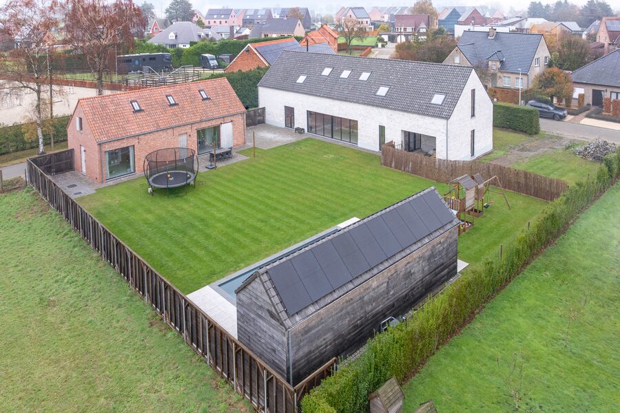 Tegenover de hoeve ligt een volledig gerenoveerd bijgebouw met polybetonvloer, vloerverwarming en een hoogwaardige afwerking. Dankzij EPC B is deze ruimte energiezuinig en meteen bruikbaar als praktijk, mantelzorgwoning, atelier, gastenverblijf of thuiswerkplek. De aparte toegang maakt elke bestemming mogelijk.