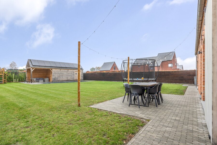 De landelijke ligging garandeert rust en ademruimte, terwijl voorzieningen en verbindingswegen vlot bereikbaar blijven. De grote buitenruimte biedt tal van opties: tuin, dieren, boomgaard of recreatie.