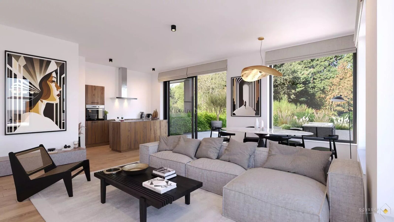 Grand séjour à la disposition atypique, avec salle à manger et cuisine ouverte super équipée- 49,7 m² avec la terrasse