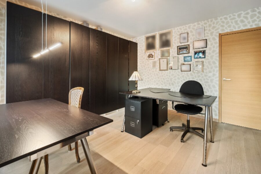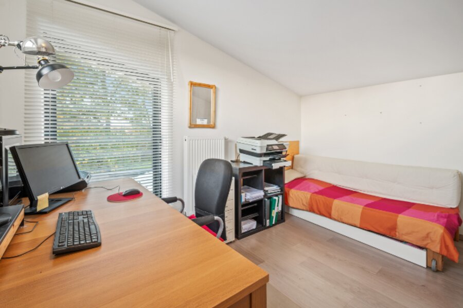 bureel 14m², 3 slaapkamers (master slaapkamer met dressing en badkamer bad, douche, 2 wastafels, handdoek droger, toilet op het gelijkvloers en op de verdieping 2 slaapkamers en douche kamer met wastafel en toilet.